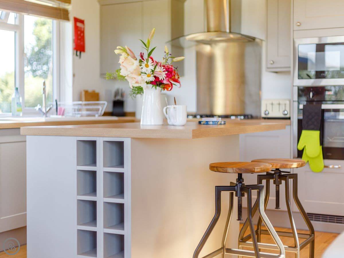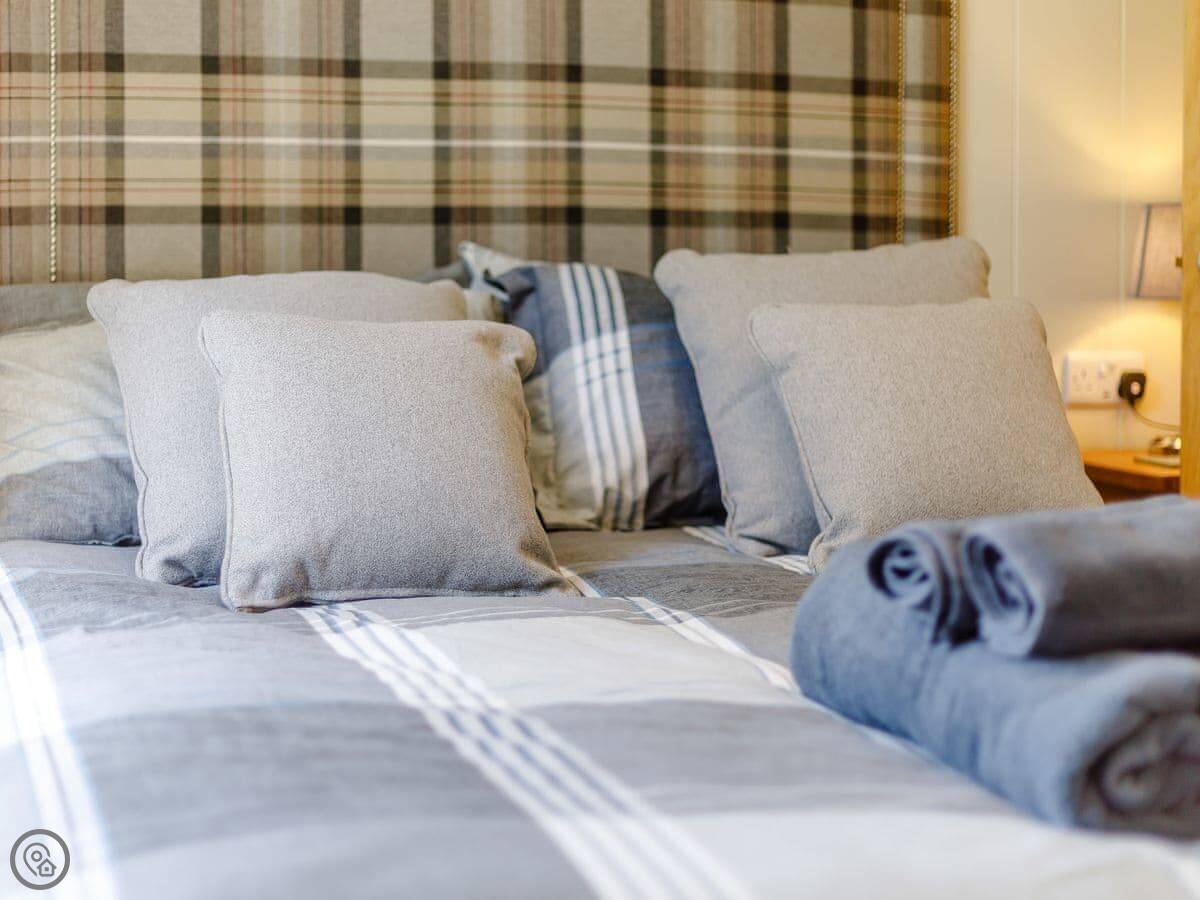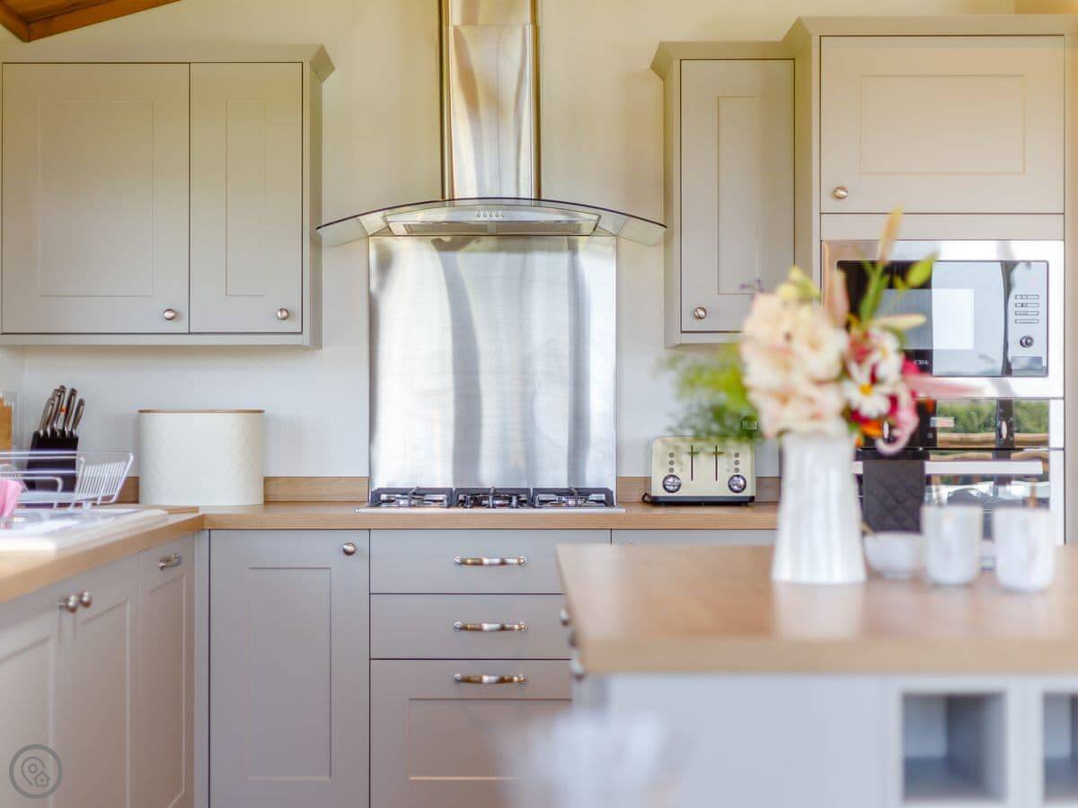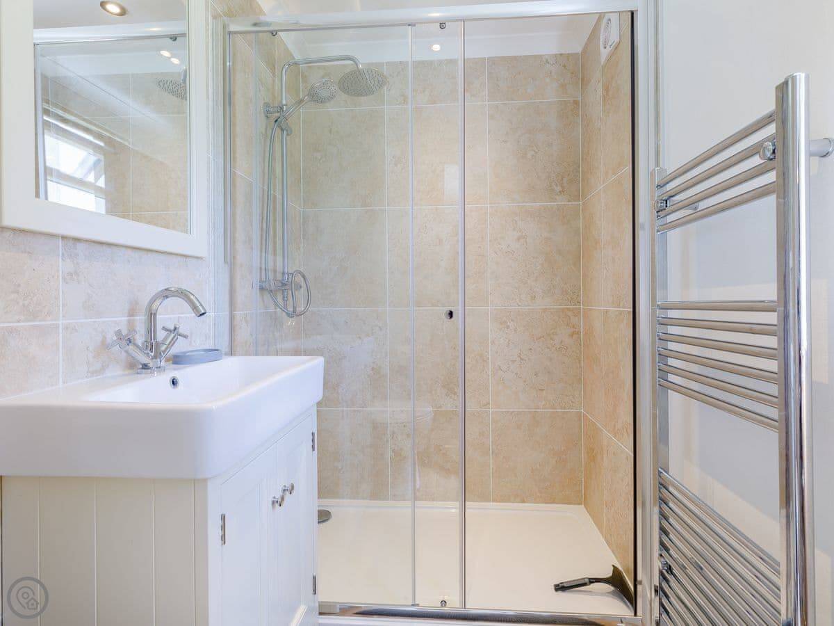 It sleeps four. Two bedrooms, both have their own bathrooms. It's got a 5 Star rating, which means it's new and kitted out to a high standard. Everything is on one floor, so it's accessible.