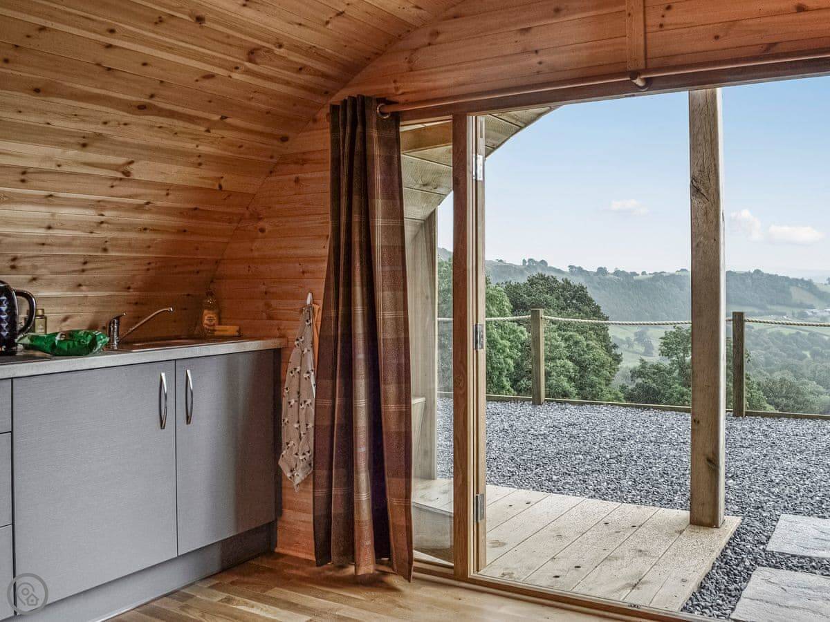 Valley View is a pod on our farm near Siloh. It's detached. You look out over the fields towards the Black Mountains and the Brecon Beacons. Llandovery is about two miles away for shops and cafes.