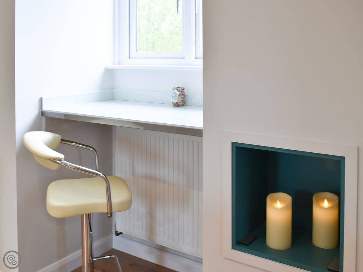 You get a shared patio and garden, and you can walk into our private bluebell woods. It's quite peaceful.