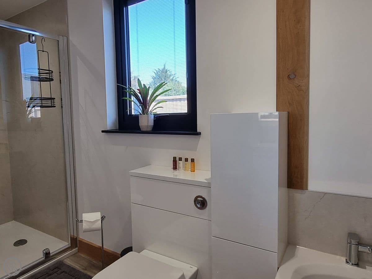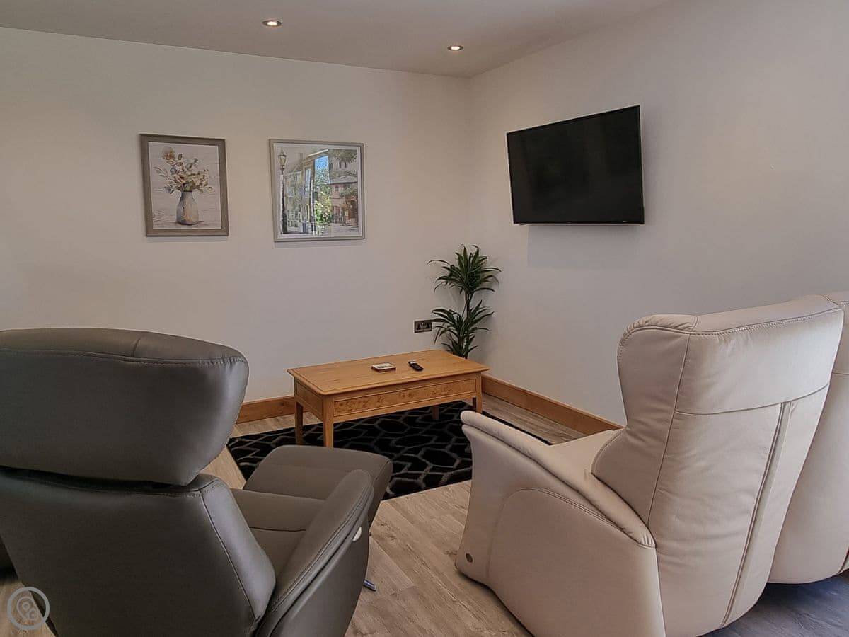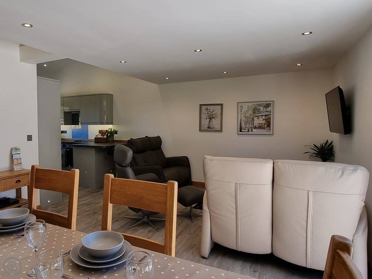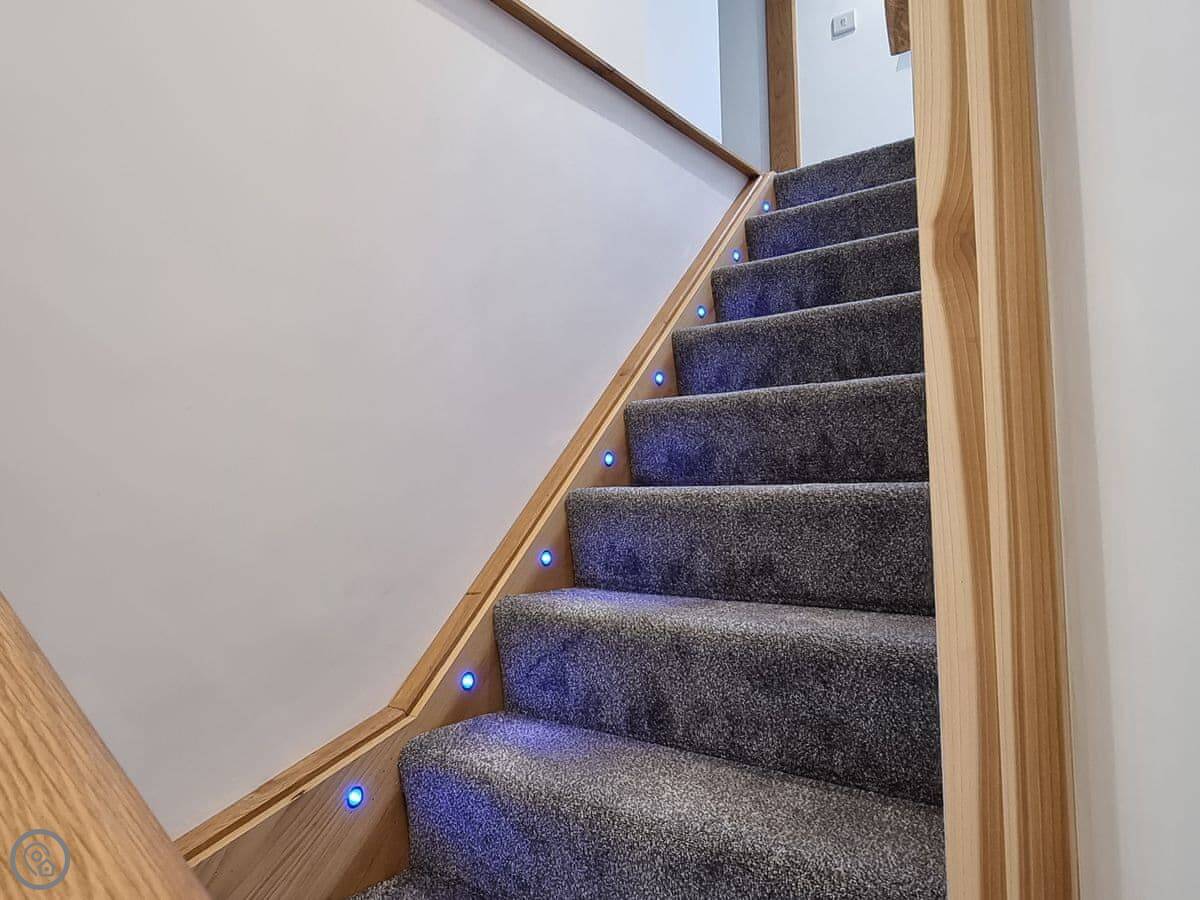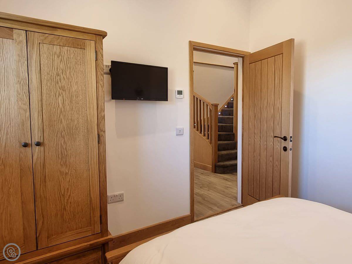 It's got a five star rating, which means it's kitted out to a high standard. Underfloor heating throughout. Smart TVs in every bedroom. The kitchen is large and open plan with a big table.