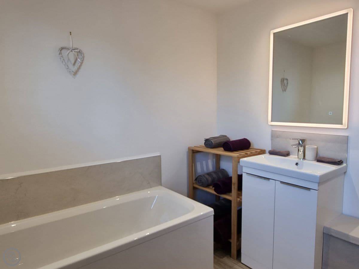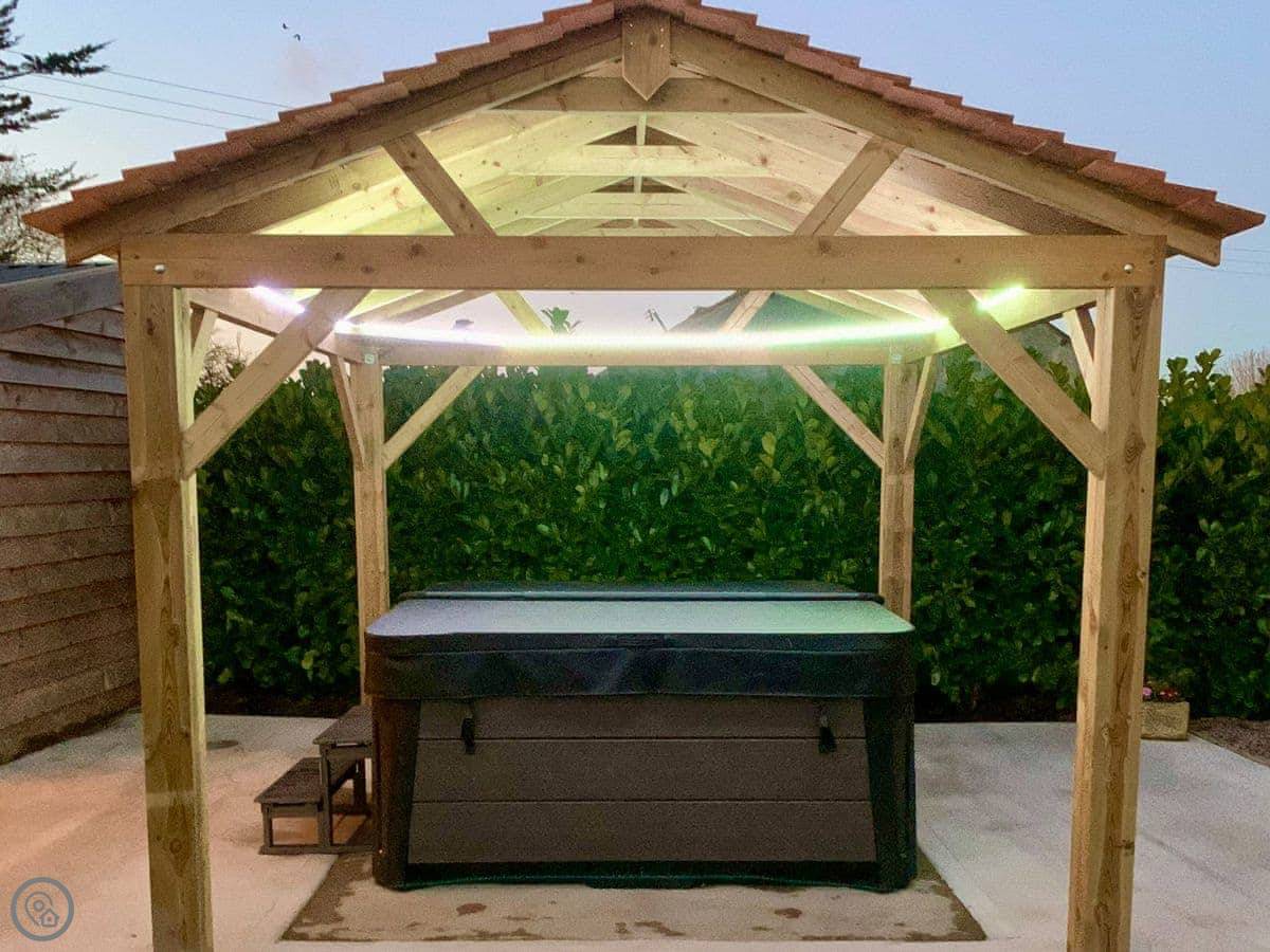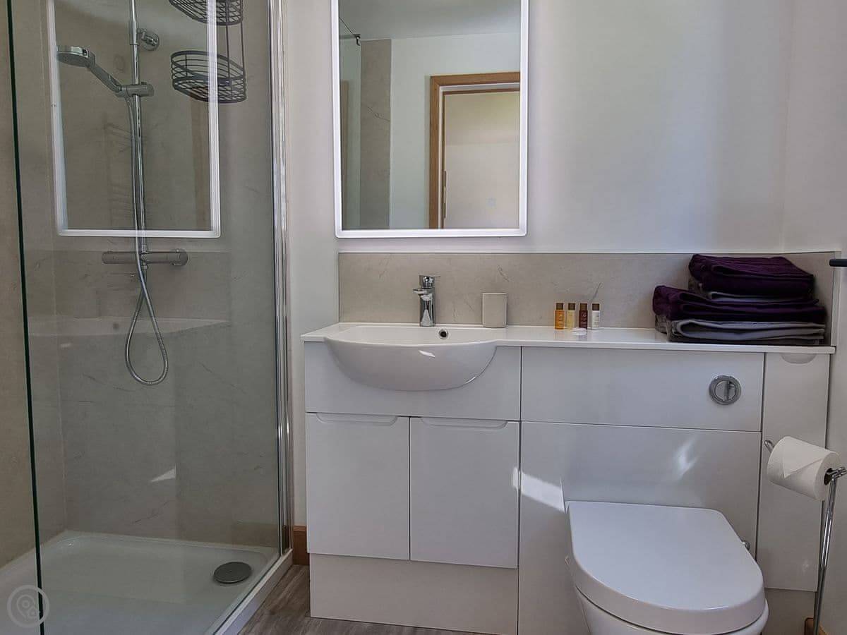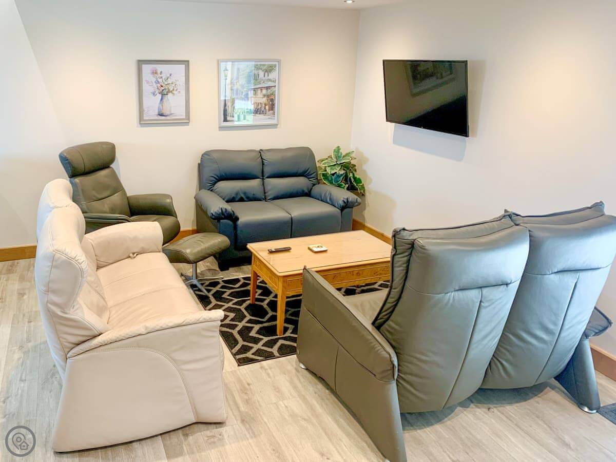 It's got a five star rating, which means it's kitted out to a high standard. Underfloor heating throughout. Smart TVs in every bedroom. The kitchen is large and open plan with a big table.