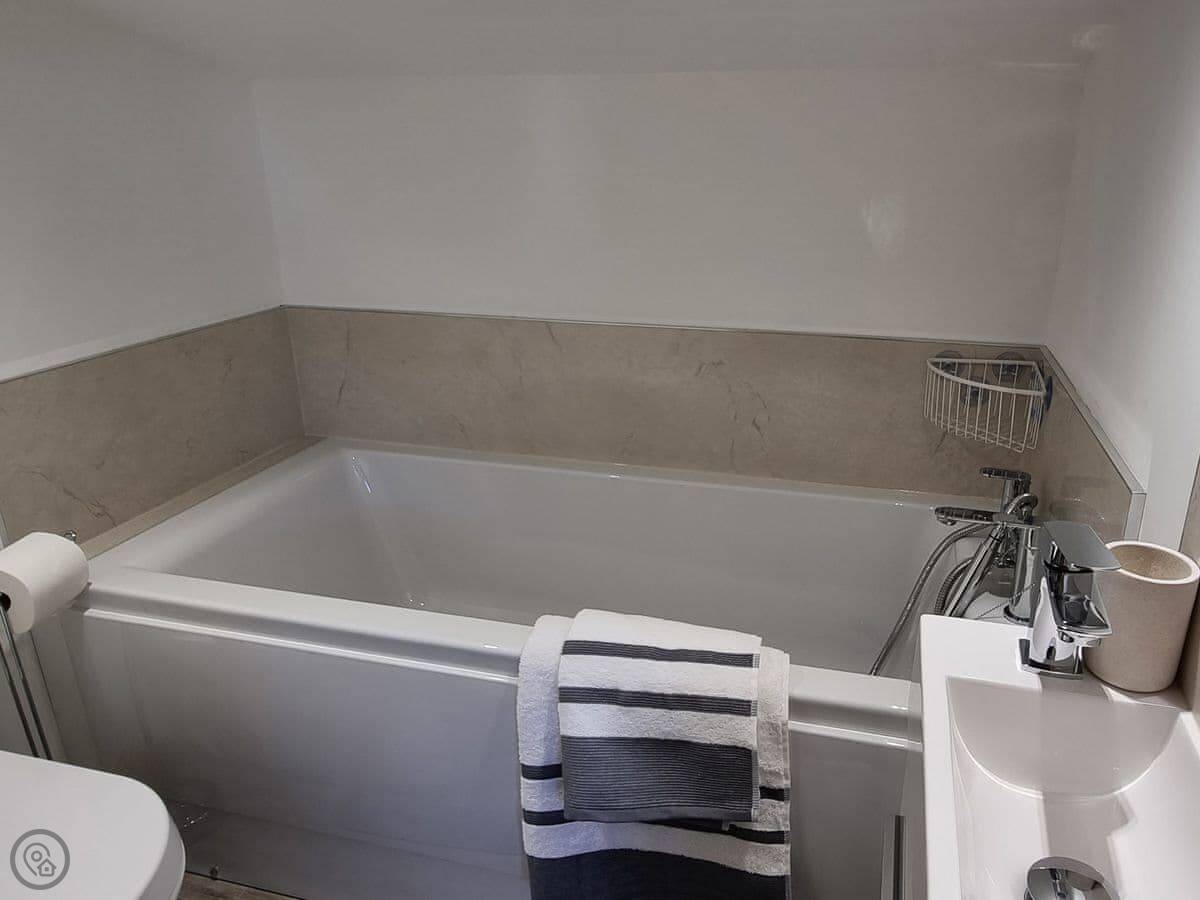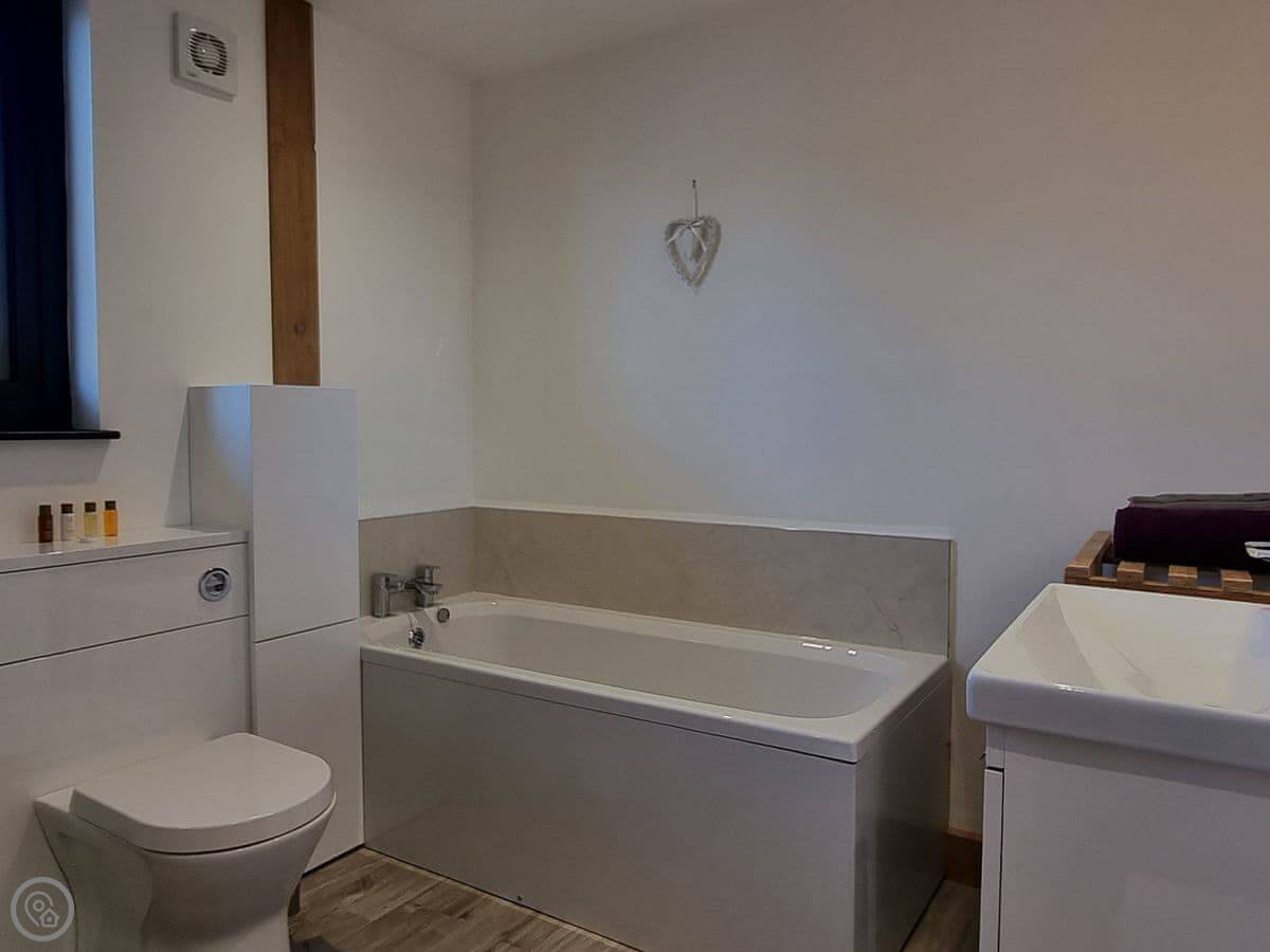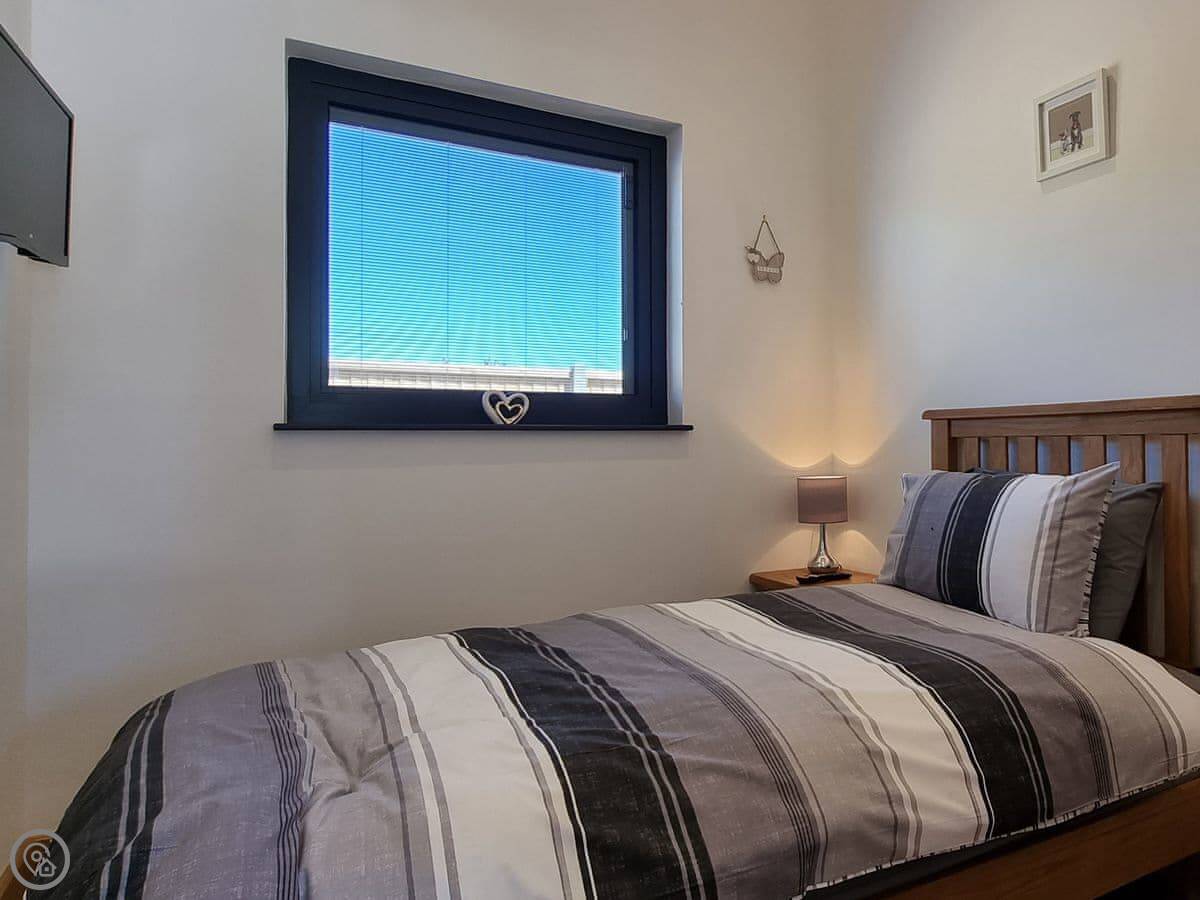 Three bedrooms are on the ground floor, which includes a king-size with an en-suite. Upstairs there are two more bedrooms, one with four singles. The ceiling is low up there, so mind your head.