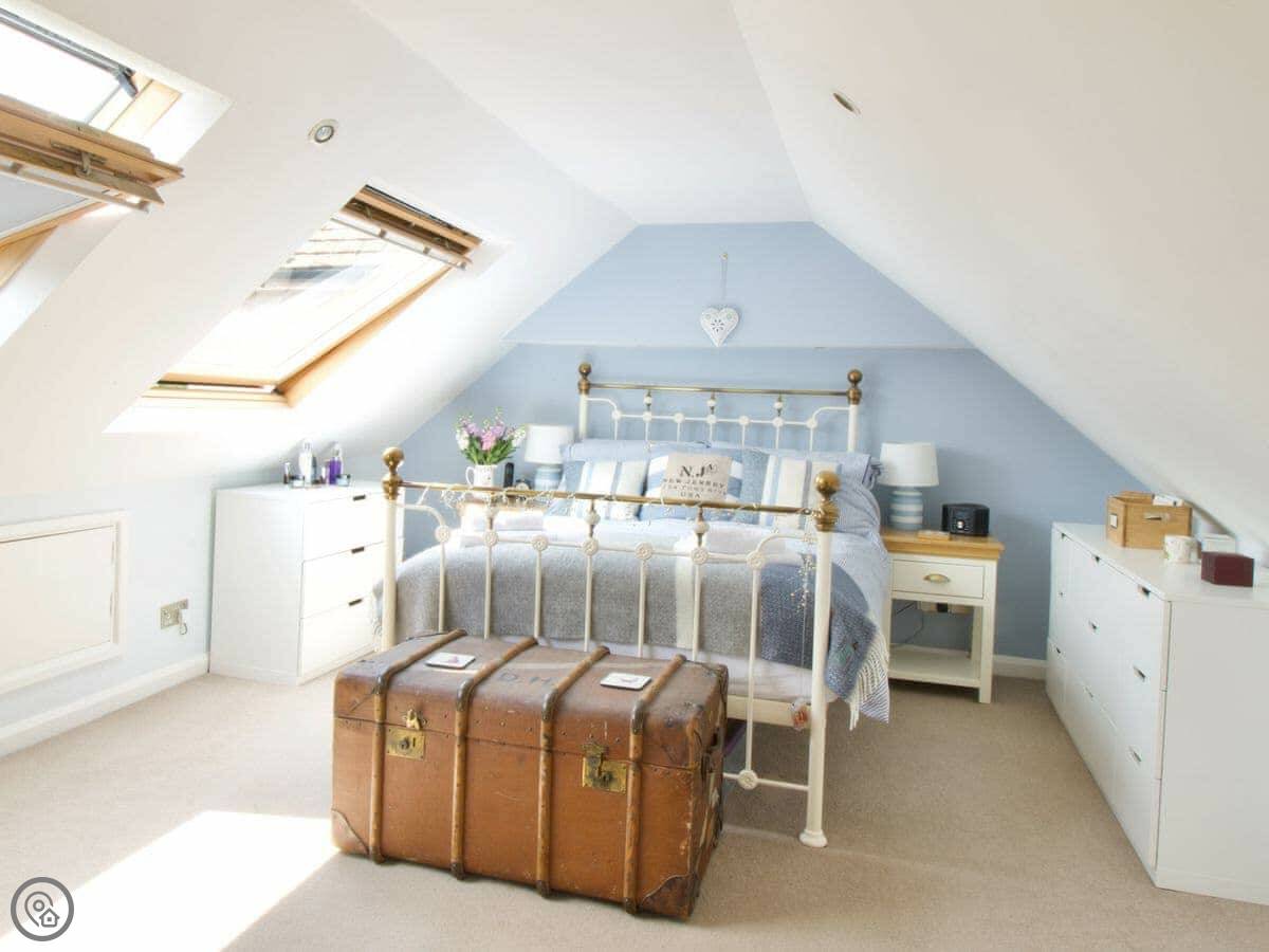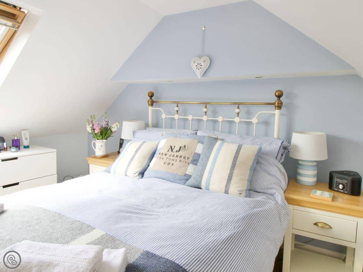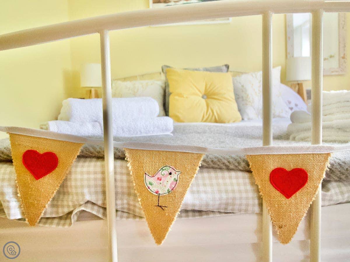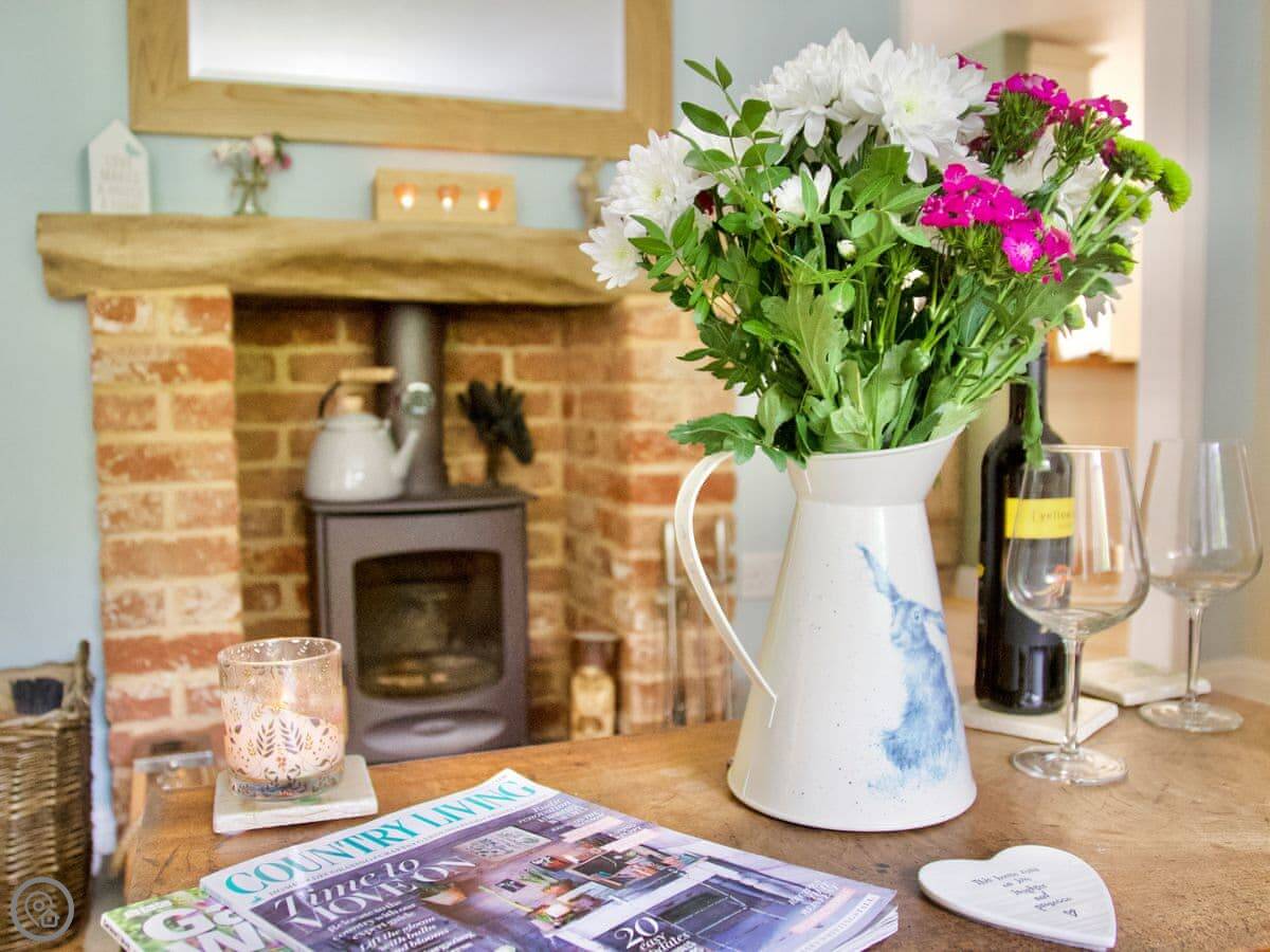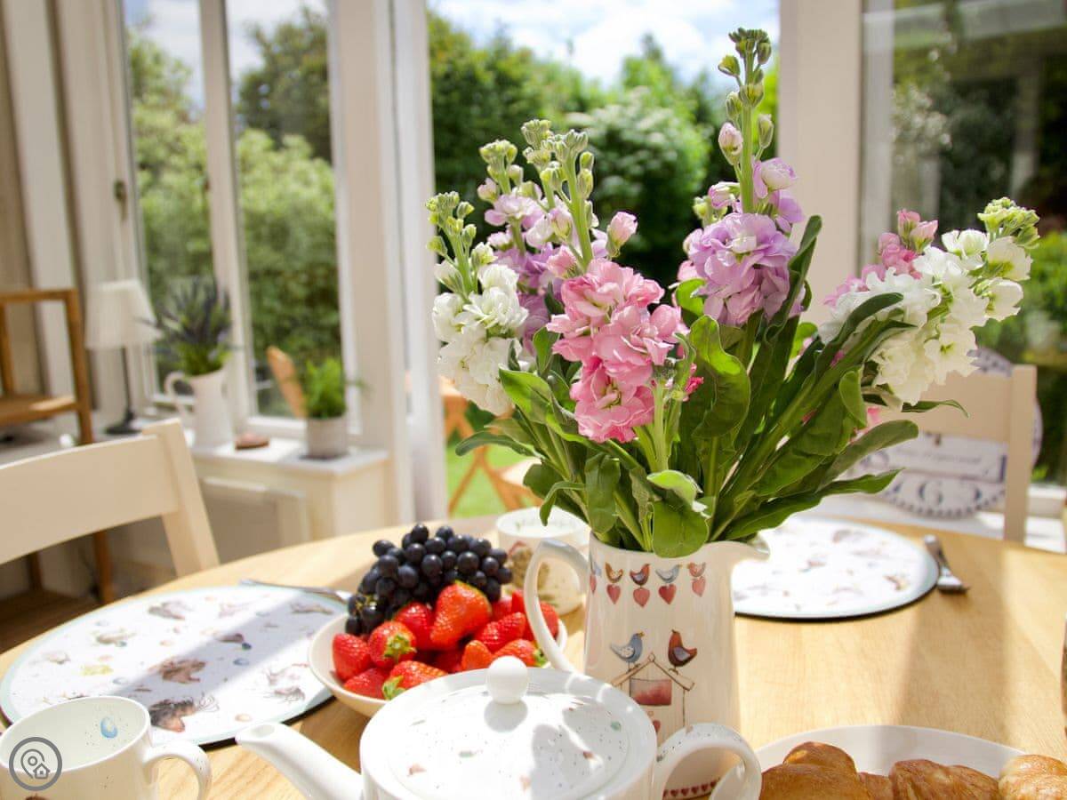 Valentine Cottage is a super cute 2-bedroom character cottage tastefully decorated in heritage colours with light oak floors throughout. Situated in the charming Hampshire village of Twyford nestled on the edge of the South Downs National Park the private enclosed rear garden and rural location create an idyllic setting for a romantic getaway. The welcoming sitting room has comfortable seating for four with a wood burner set in a feature fireplace making an ideal setting for relaxing evenings after exploring the many surrounding attractions. Leading off the sitting room is a cosy snug with a collection of books and a selection of spirits which can be enjoyed in return for a small donation, so why not treat yourself to a read over a nightcap. There are even books with cocktail recipes if you are feeling adventurous. The kitchen is well-equipped with everything you need to make your stay comfortable including a retro fridge freezer, Lavazza coffee machine machine, and a dishwasher, as who wants to do the dishes when you are on holiday? The dining area is in the heated conservatory with French doors opening out onto the pretty garden - great for year-round dining options. There is also a writing bureau and a comfortable sofa which is ideal for a relaxing drink. There is an easily accessible double bedroom downstairs with plenty of wardrobe space, as well as a spacious wet room and utility room with a washing machine and tumble dryer. On the first floor, there is a spectacular double bedroom with vaulted ceilings and lovely views to the local park and cricket pitch. All beds have Egyptian cotton bed linen. Outside at the front is a comfortable bench and a bike store with chain, padlock and ground anchor, suitable for up to four bikes. Please request keys for the bike shed when you make your initial booking. At the rear there is a pretty enclosed garden with a barbecue and more outside seating.