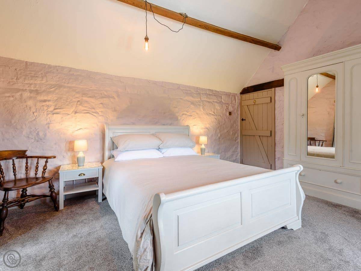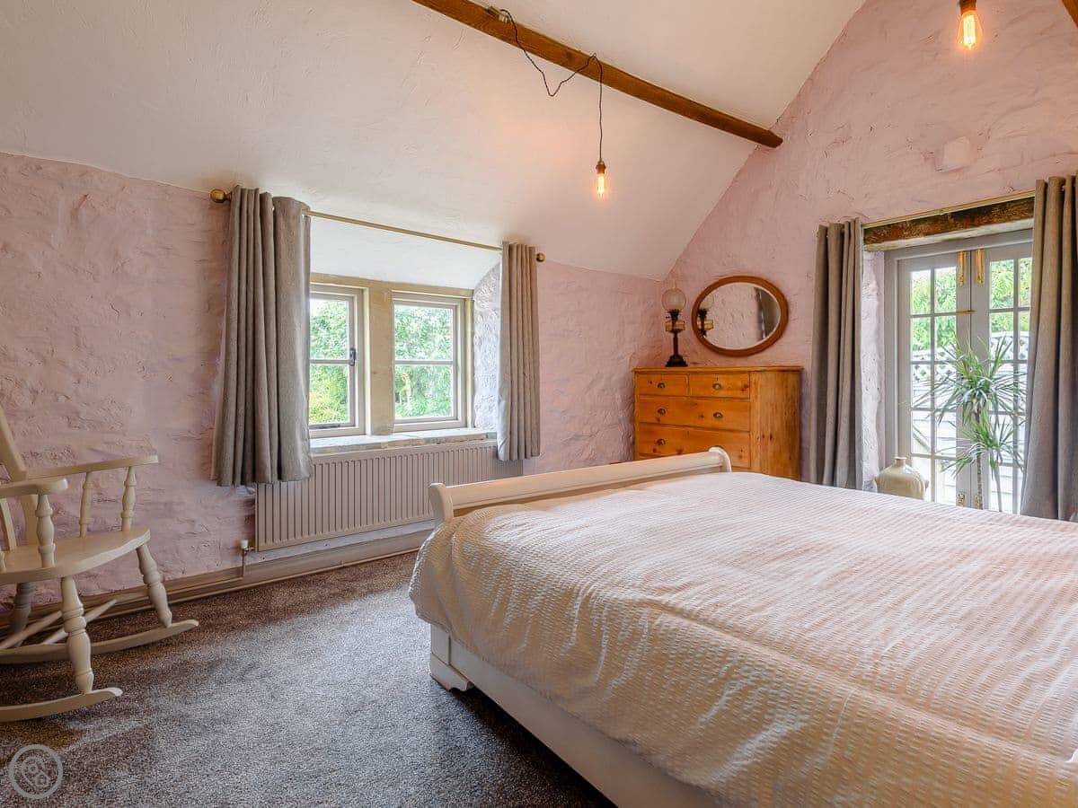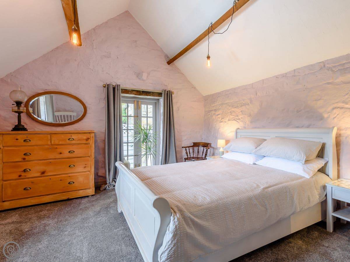 It sleeps eight people in four bedrooms. There are two bathrooms, one is ensuite to the main bedroom. It's got a 4 Star rating, which means it's well kept and comfortable. It's a listed building, so the windows are single-glazed and the stairs are winding. They're solid, but watch your head in a couple of places.
