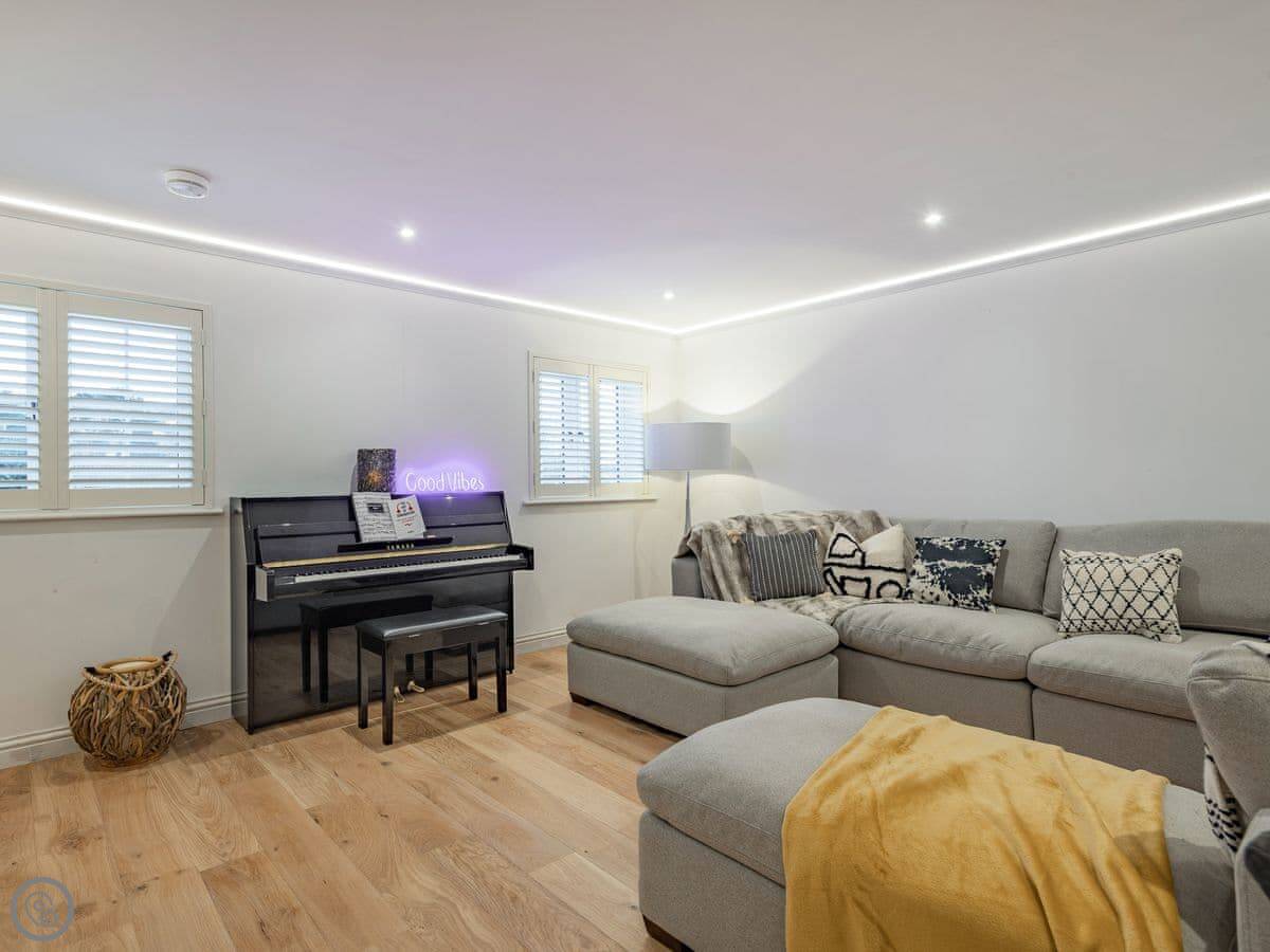With bi-fold doors from the main family room and kitchen that really do allow you to bring this outside in and a fire pit, outdoor dining and BBQ area, this property is a great year-round choice. There is also a hot and cold outside hose for sandy feet and dogs. Boasting four bedrooms and three bathrooms, along with a separate ground floor toilet, this property has lots of space to relax in, including a snug/movie room which features a gas wood burner, a large corner sofa and Yamaha piano for those musical moments, along with a home office area, complete with printer and wiring for games consoles . With touches like mood lighting and vaulted ceilings in some of the bedrooms and bathrooms, and indeed distant sea-views to be enjoyed in some first-floor rooms too, this property really does have everything you need for a fantastic stay and is perfect whether you are enjoying a family holiday, celebrating an anniversary or birthday, or are just looking for that something extra special for your family holiday.