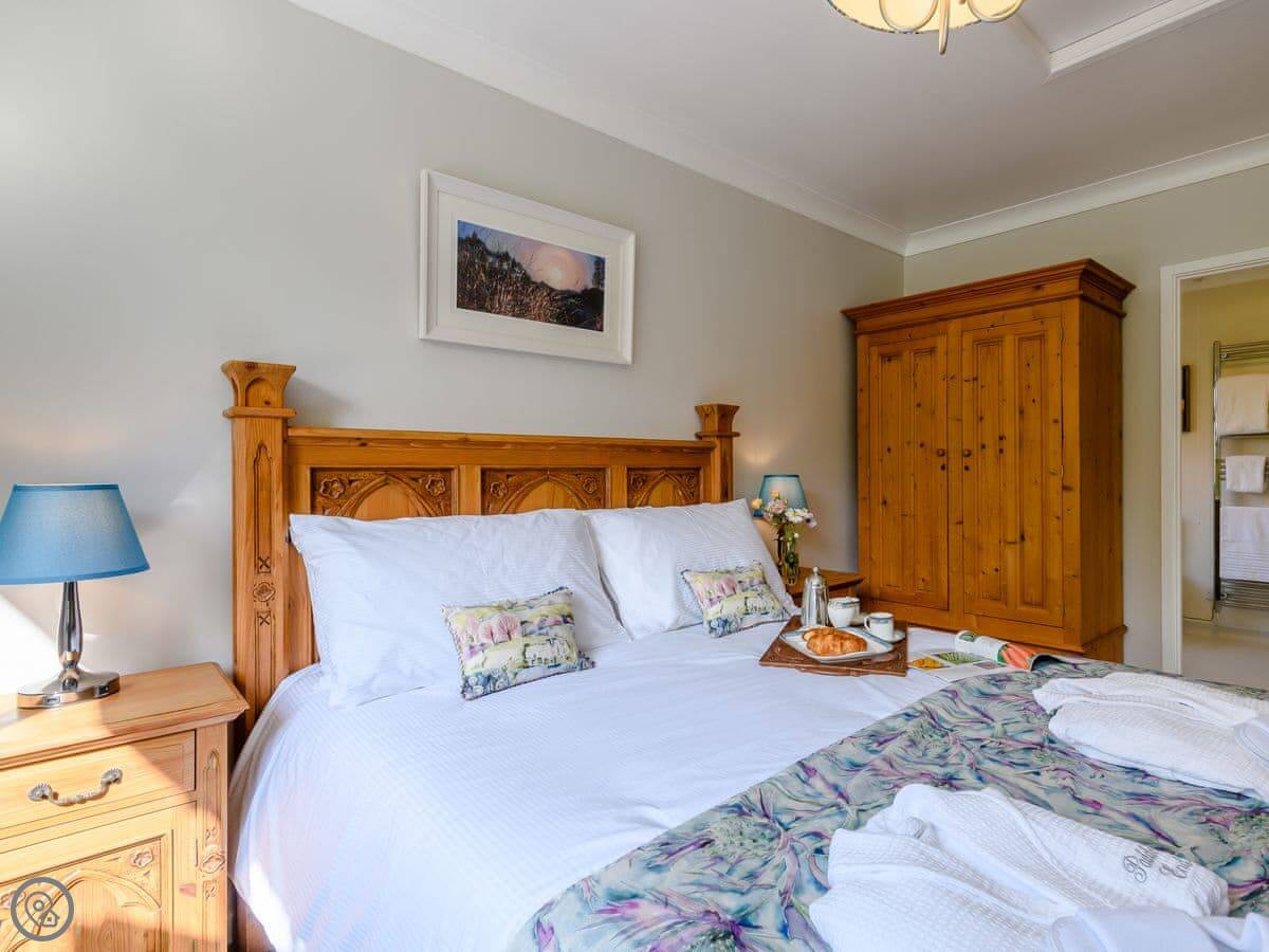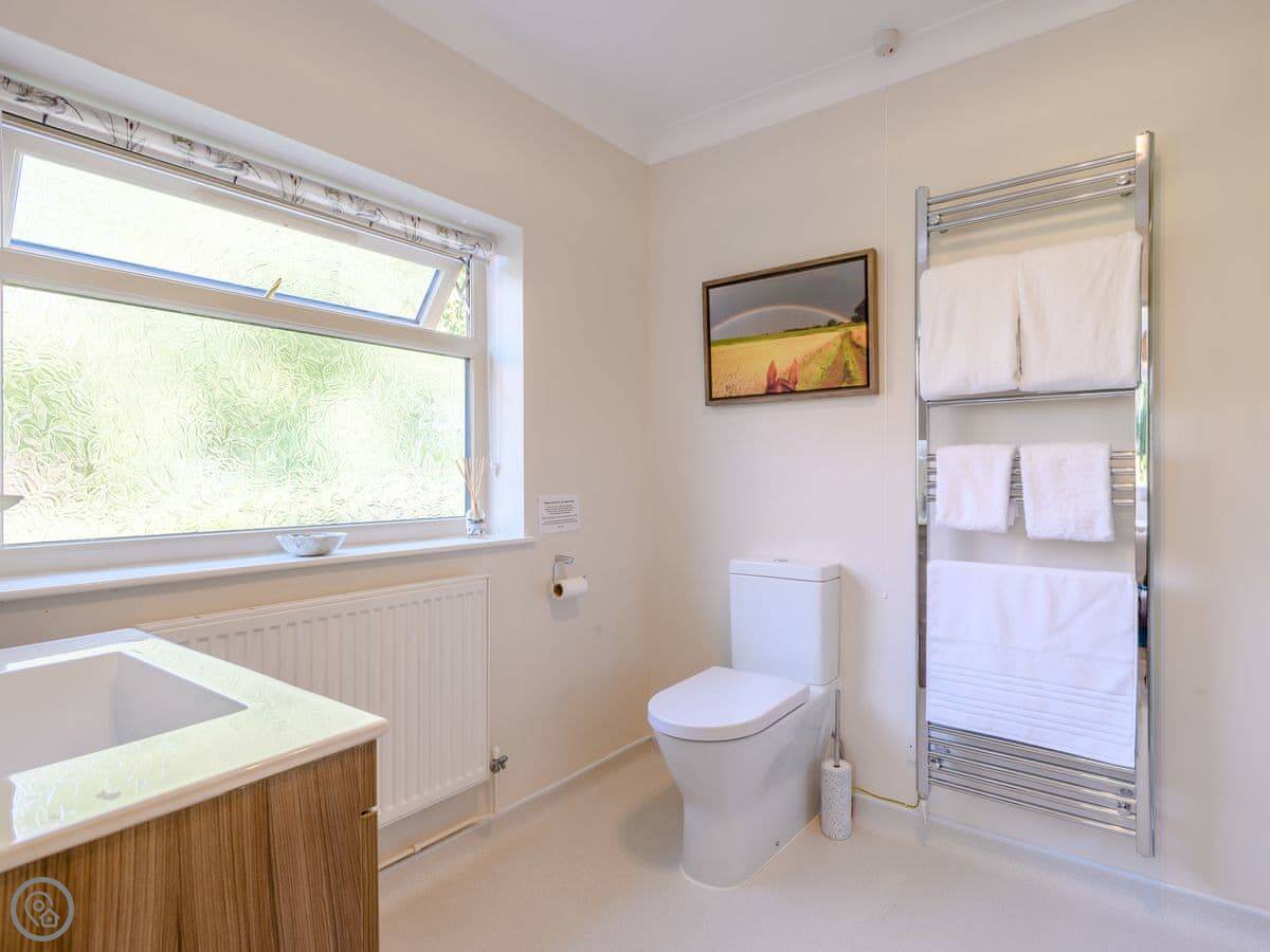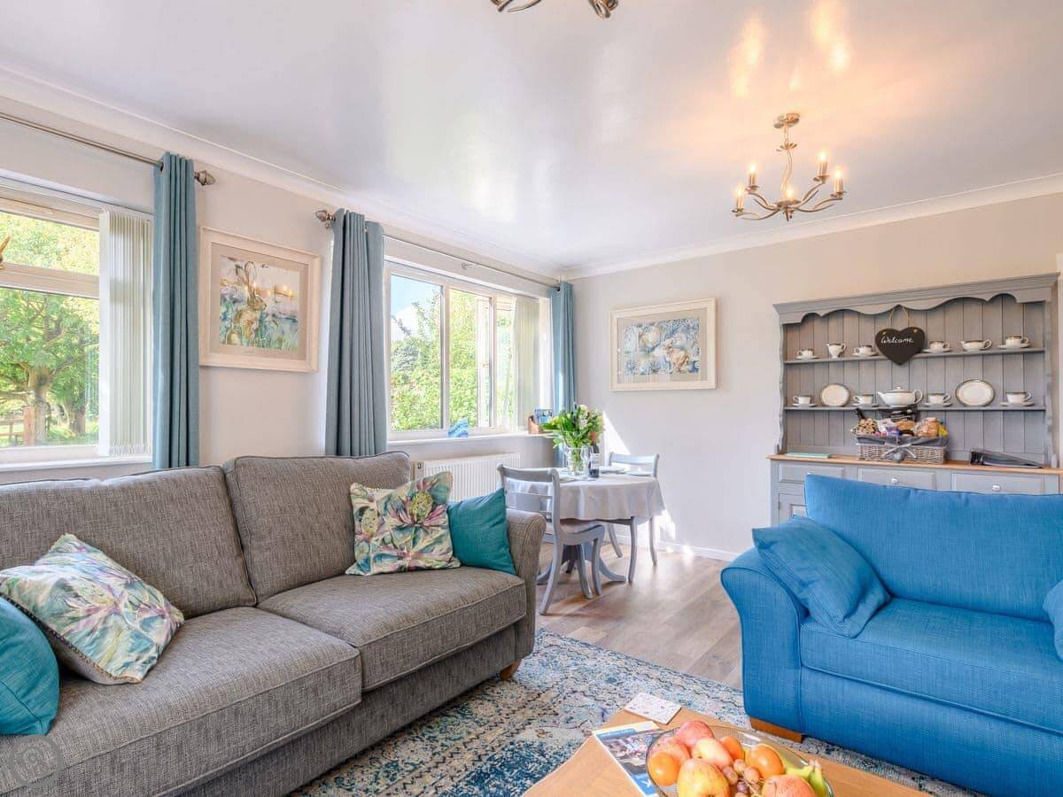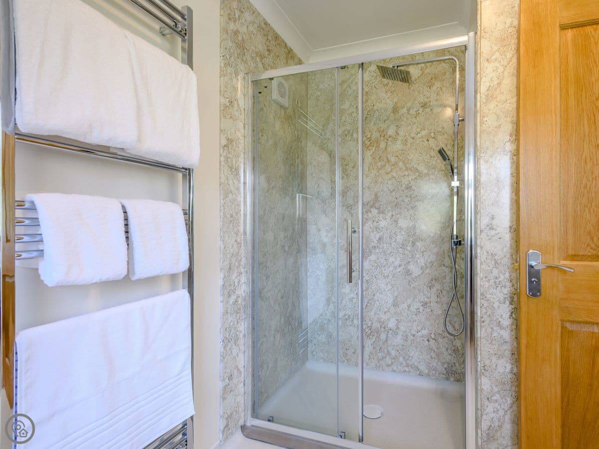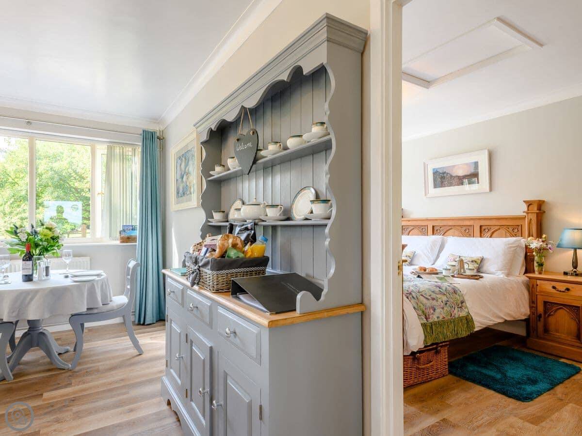It's for two people. One bedroom with an en-suite shower room. It's got a 5 Star rating, which means it's well-equipped and finished to a high standard. Everything is on one level.