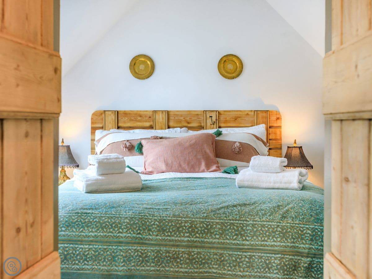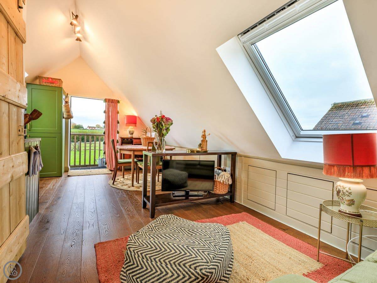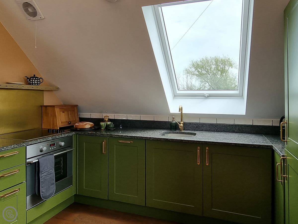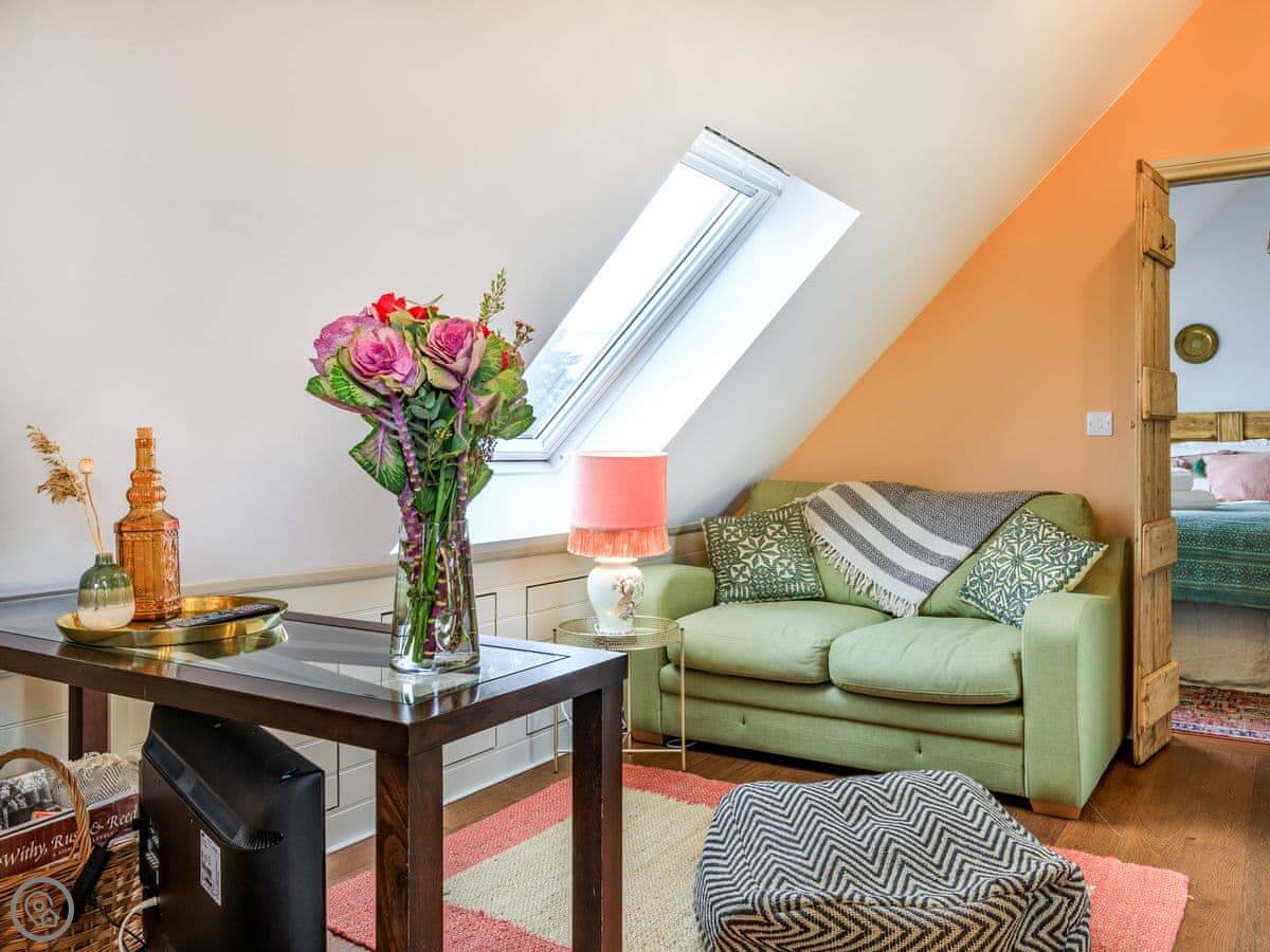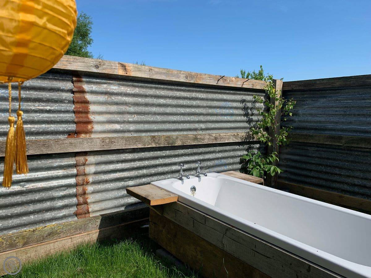 Head up the stairs and through the front door, where the open plan lounge, kitchen and dining areas welcome you in. The kitchen has been fully equipped with all you need to make anything from the simplest breakfast to a large meal, and it also has a dishwasher for easy clean up afterwards! The comfortable lounge/dining area is the perfect spot to sit back and relax after a day exploring Somerset’s attractions. The spacious bedroom has a super kingsize zip and link bed, making it perfect for a couple or friends, and it also has plenty of built-in storage for your belongings. The wonderful shower room has a walk-in shower with quirky brass shower head. Underfloor heating features throughout the apartment meaning you really can kick off your shoes and relax! Outside you have your private and secluded garden, with a lovely lawned area with garden furniture and outdoor tub, why not grab a glass of bubbly, sit back and relax under the stars.