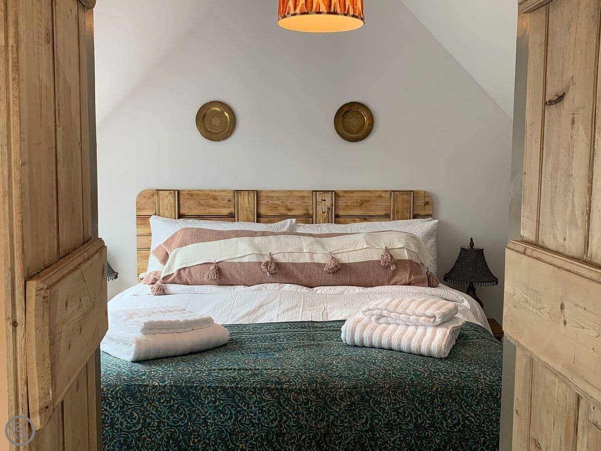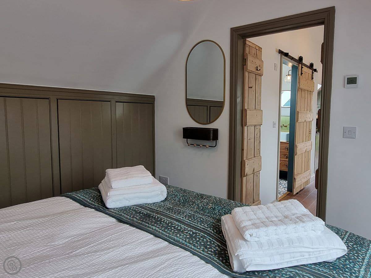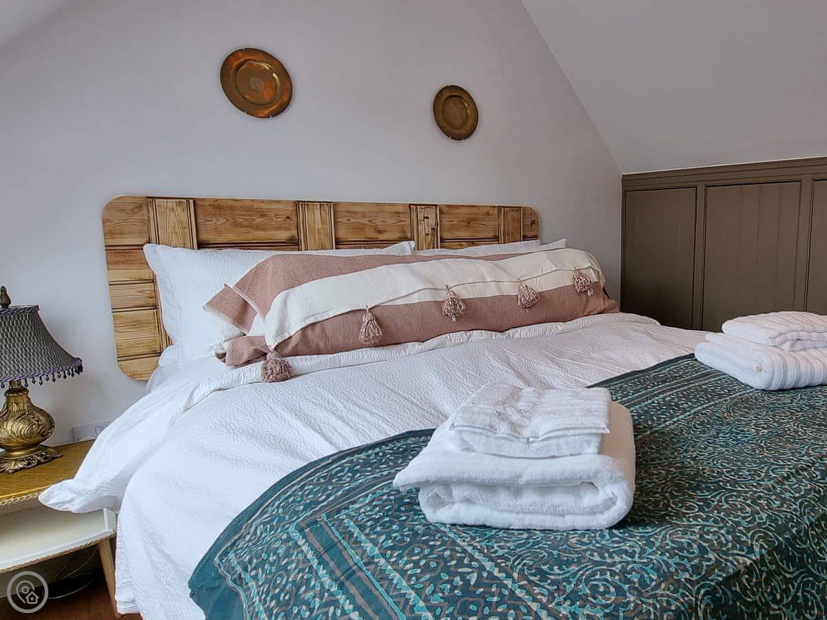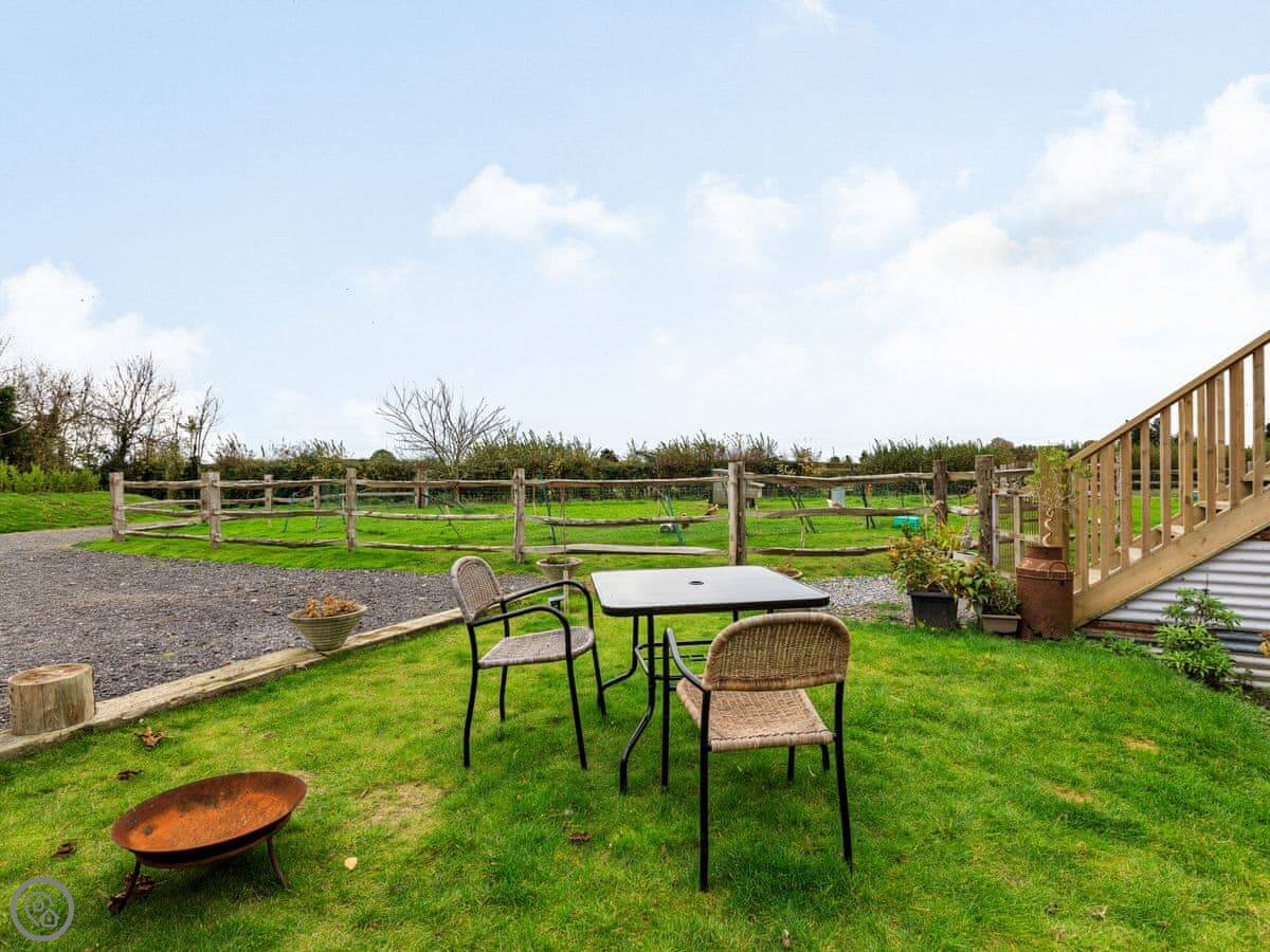 Head up the stairs and through the front door, where the open plan lounge, kitchen and dining areas welcome you in. The kitchen has been fully equipped with all you need to make anything from the simplest breakfast to a large meal, and it also has a dishwasher for easy clean up afterwards! The comfortable lounge/dining area is the perfect spot to sit back and relax after a day exploring Somerset’s attractions. The spacious bedroom has a super kingsize zip and link bed, making it perfect for a couple or friends, and it also has plenty of built-in storage for your belongings. The wonderful shower room has a walk-in shower with quirky brass shower head. Underfloor heating features throughout the apartment meaning you really can kick off your shoes and relax! Outside you have your private and secluded garden, with a lovely lawned area with garden furniture and outdoor tub, why not grab a glass of bubbly, sit back and relax under the stars.