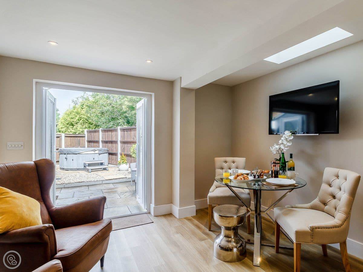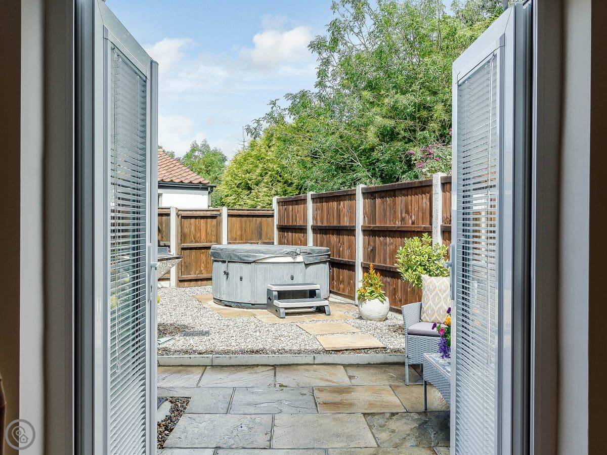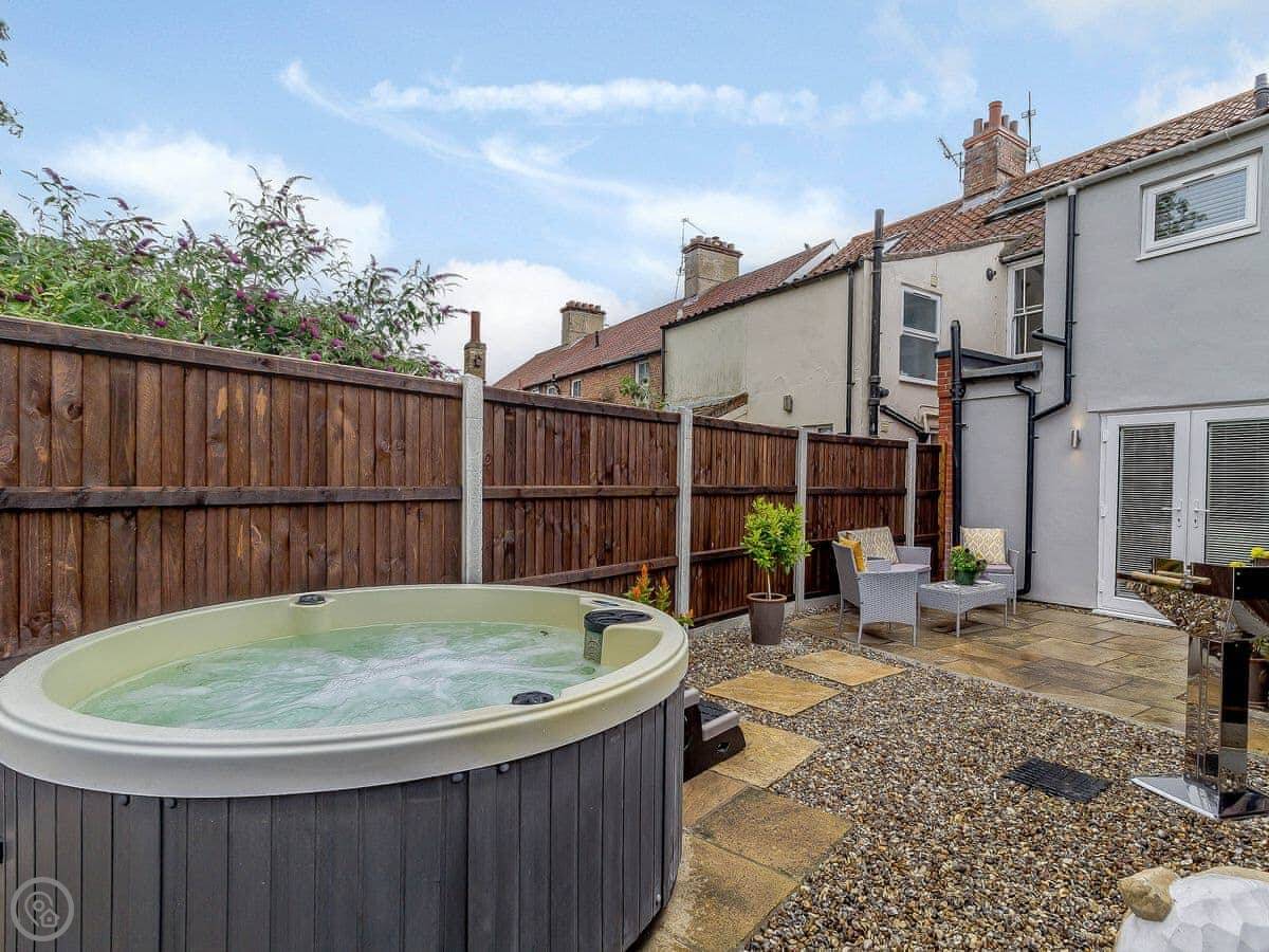 Twoo Hoots is in Holt. It's on a quiet street about a ten minute walk from the high street. You get a private patio out the back with a hot tub.