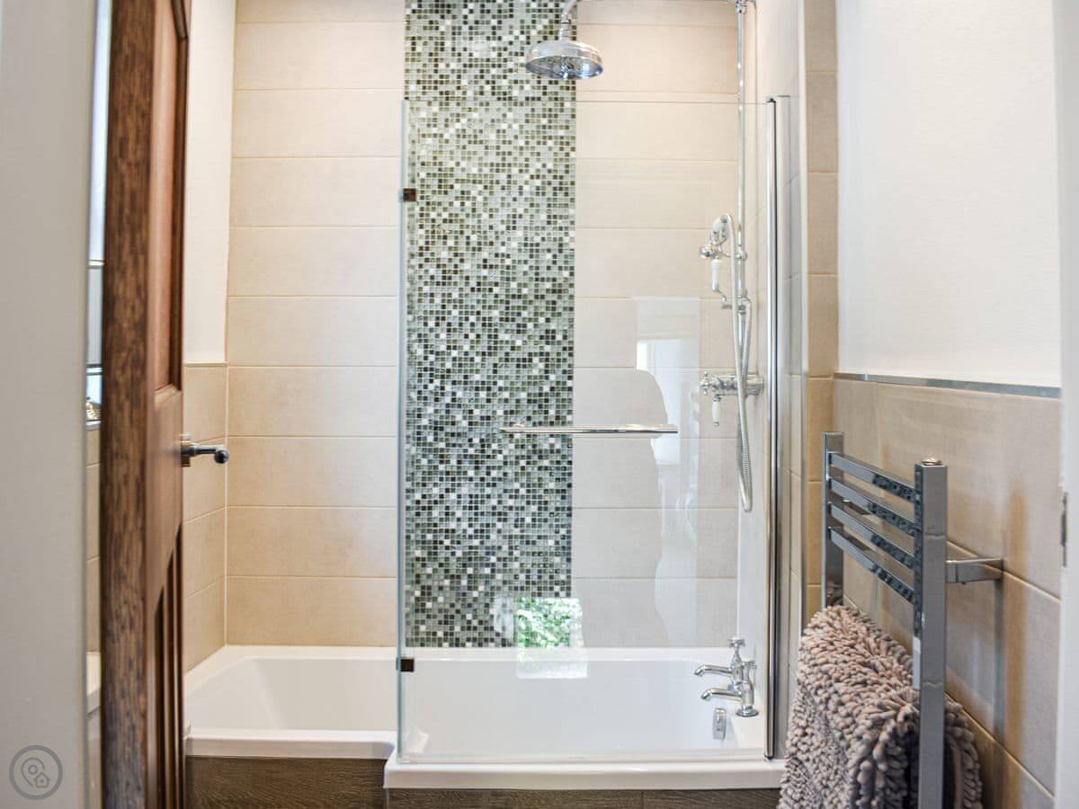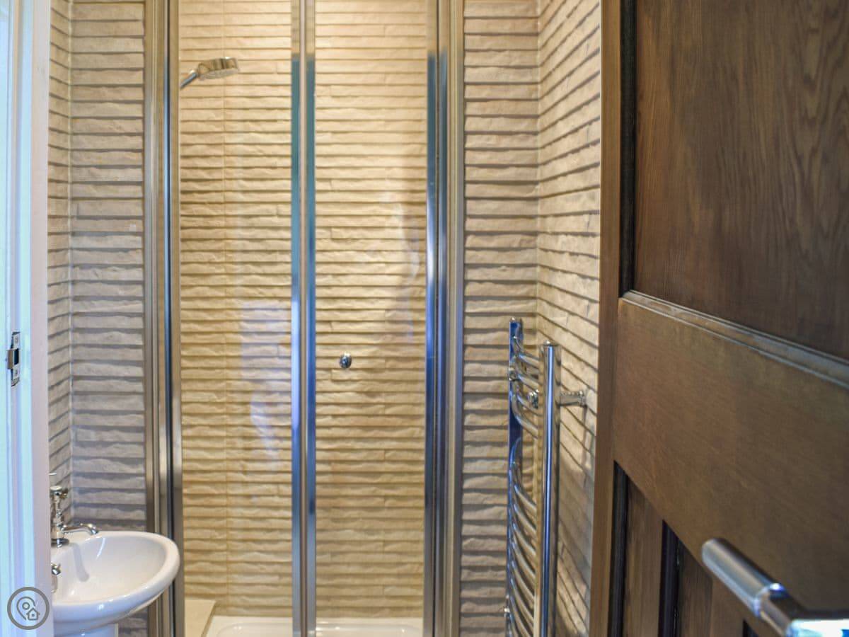It sleeps six. Three bedrooms, each with its own bathroom. That’s handy. It's got a 5 Star rating, which means it's been recently done up. It was fully renovated in 2021. The kitchen is new, with all the appliances. Patio doors open onto the garden where there's a hot tub.