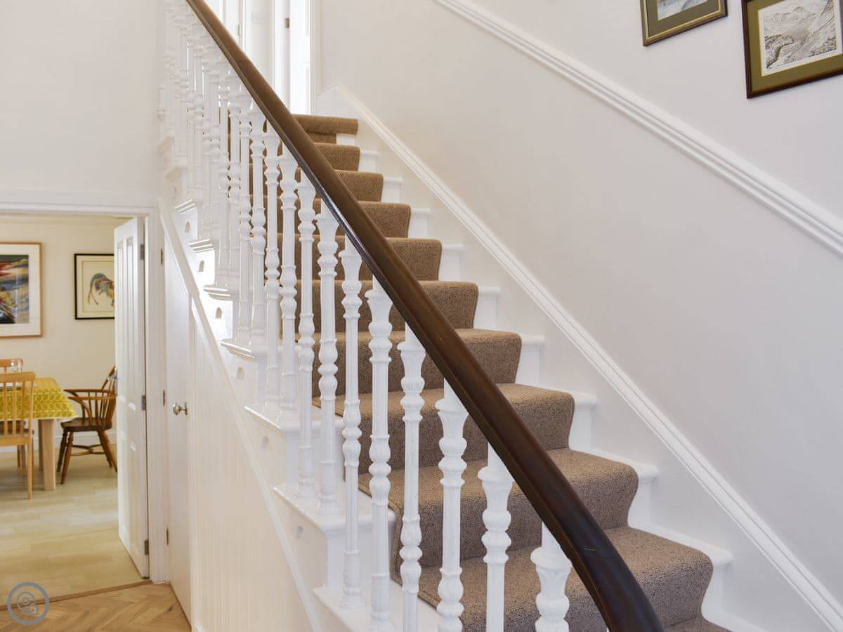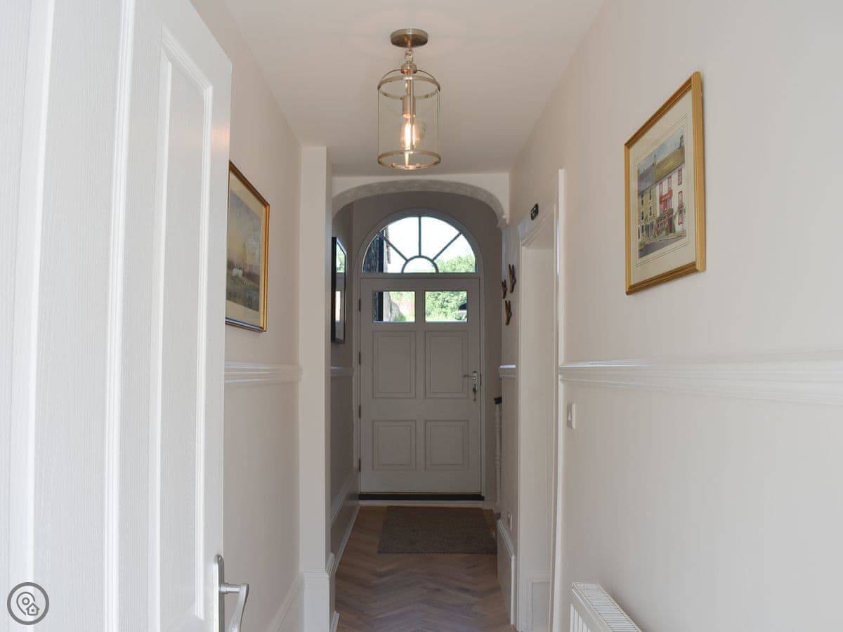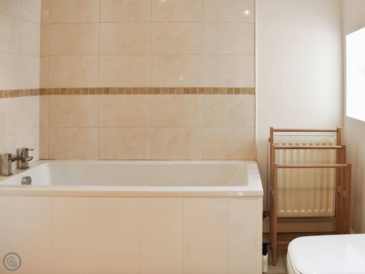 It’s a three bedroom house that sleeps six. Two bathrooms. It has a 5 Star rating, which means it's well looked after. The kitchen is big with a range cooker. The living room has an open fire, which we leave logs for.