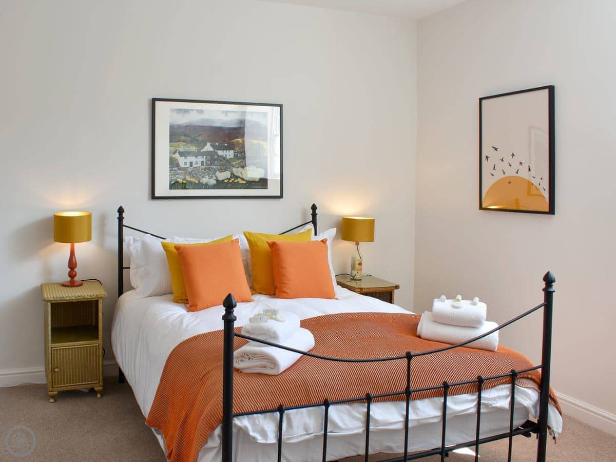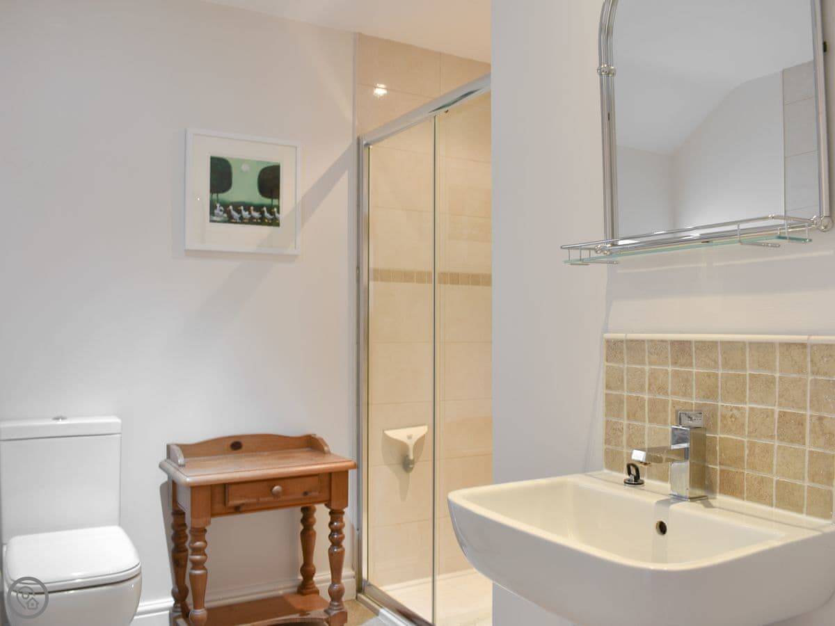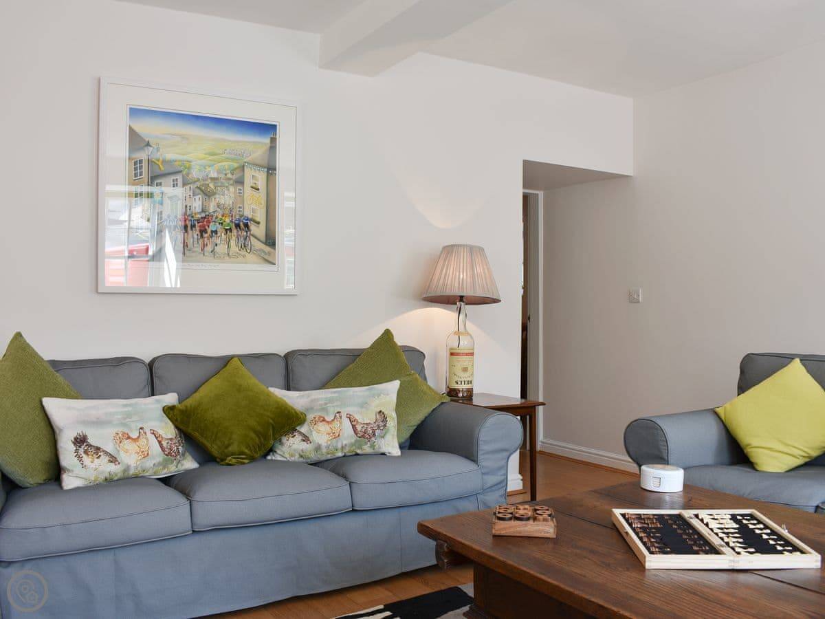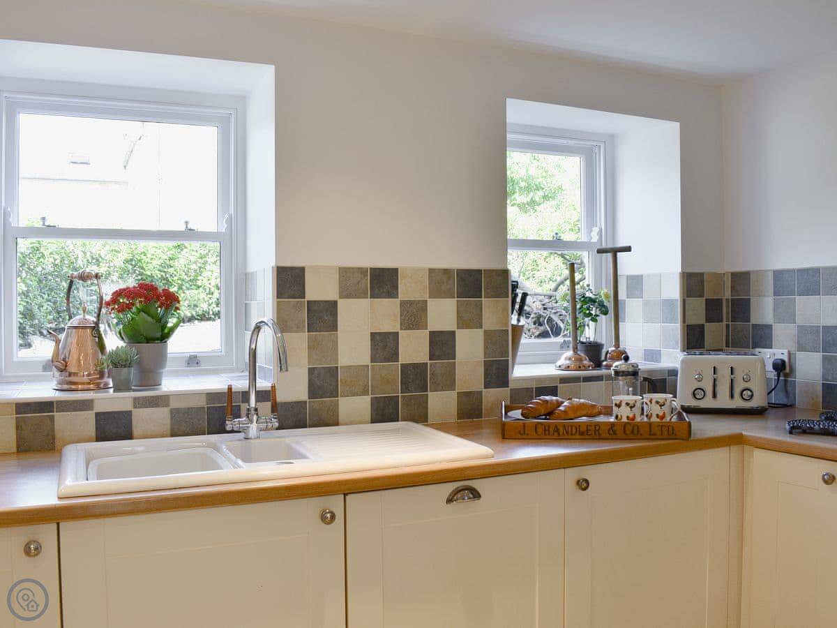 It’s a three bedroom house that sleeps six. Two bathrooms. It has a 5 Star rating, which means it's well looked after. The kitchen is big with a range cooker. The living room has an open fire, which we leave logs for.