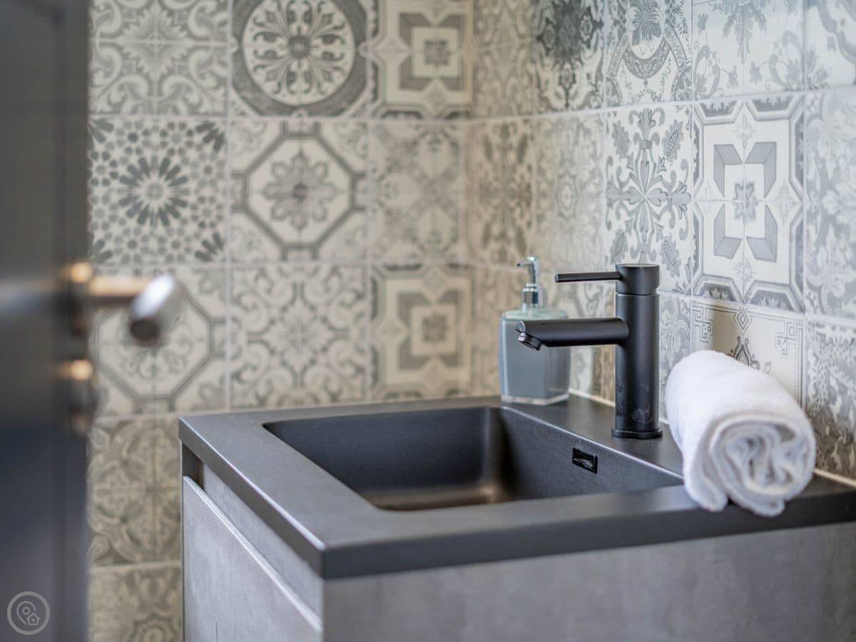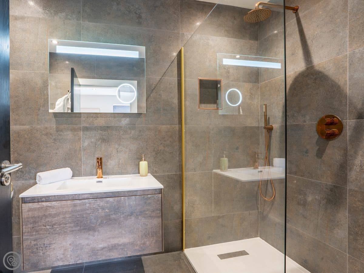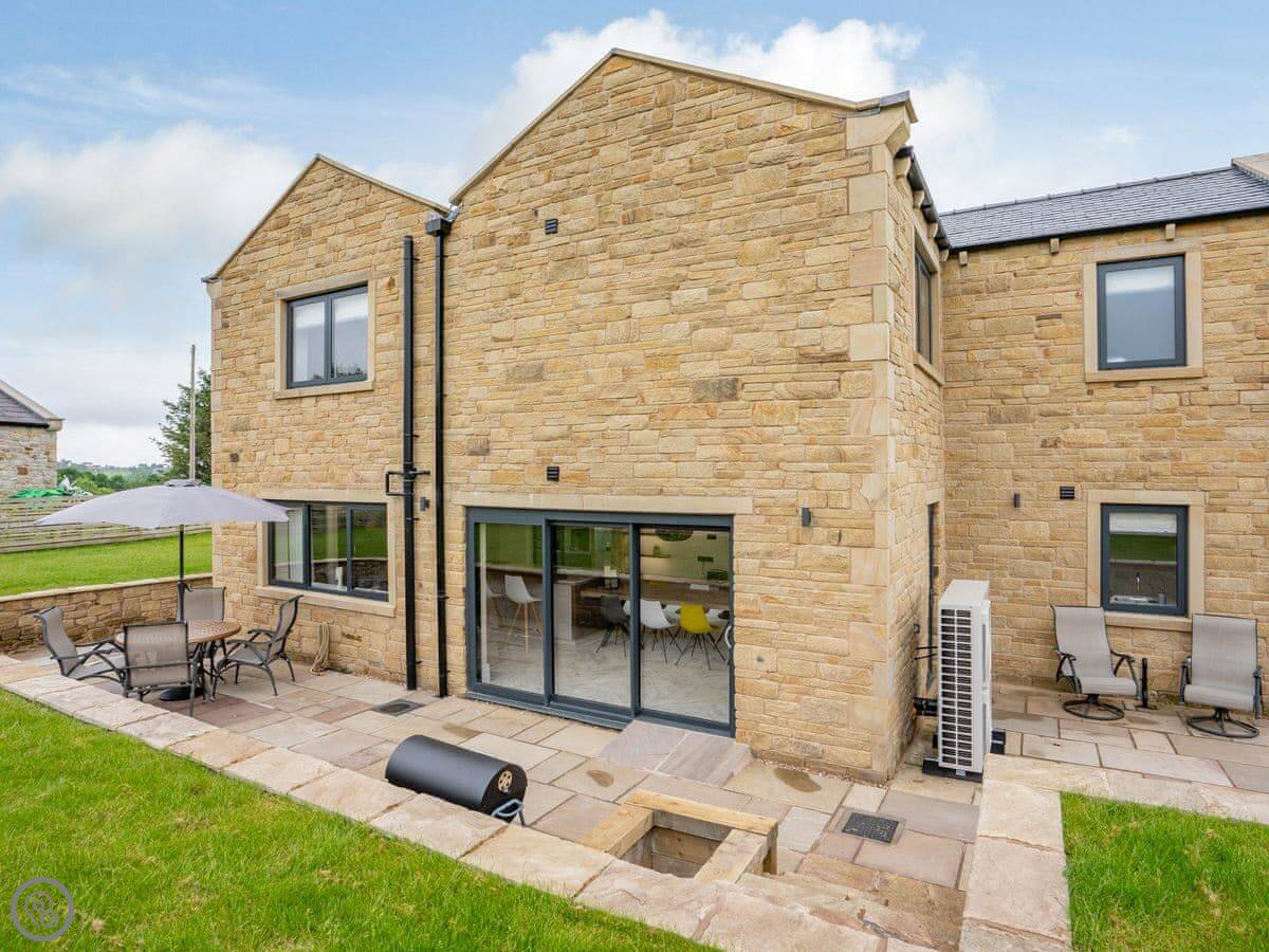 Outside, there's a good-sized garden patio and a hot tub. The views are over the fields. We've got bike storage if you bring cycles.