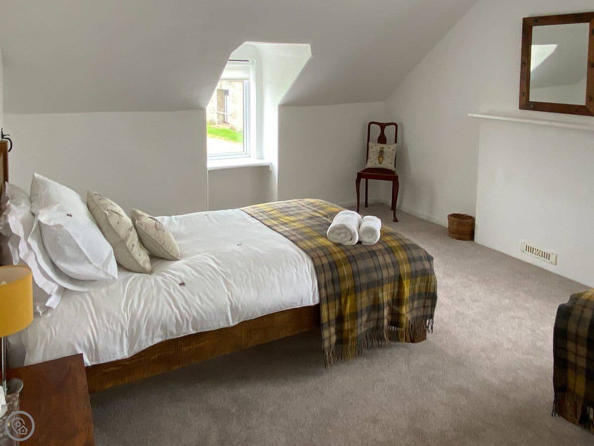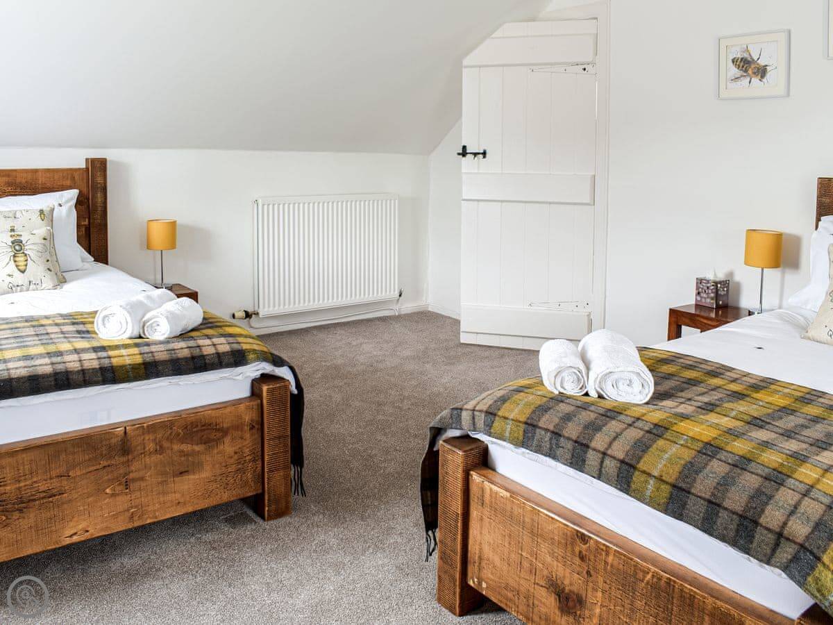 The cottage sleeps four. Two bedrooms, two bathrooms. It's got a 4 Star rating, so it's comfortable and well-equipped. The ceilings on the ground floor are quite low in places because of the beams, so taller people will need to watch their heads.