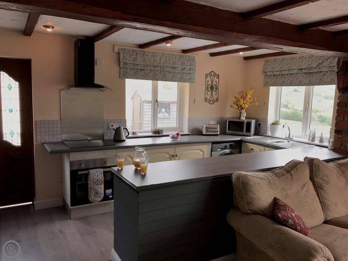 Plough Cottage consists of an open plan living space. It has a living area with wood burner, Freeview TV and DVD player and a kitchen area with all the essentials for creating a family meal. The conservatory is complete with a dining table and chairs and there is a family shower room with shower cubicle. Plough Cottage sleeps four guests in total, with a double bedroom and a twin bedroom. Outside to the rear of the property there is a patio area with great views over the rolling countryside, as well as a traditional brick-style BBQ and a seating area for al fresco dining.