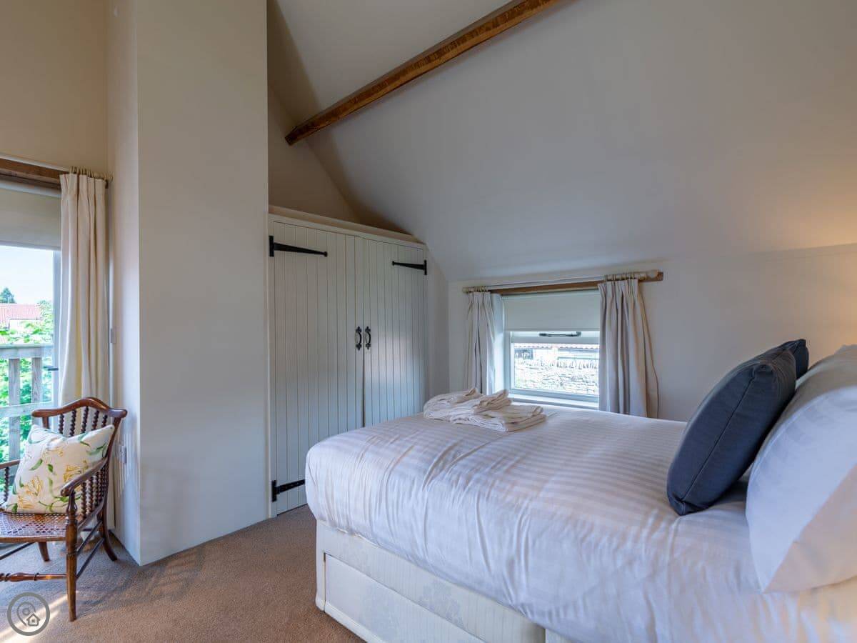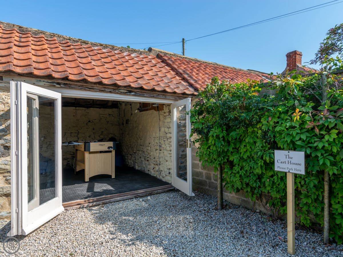 The Cart House is in Helmsley, down a quiet side road. It's detached, so you've got your own space. There's a shared gravel drive leading to gated parking for one car right outside.