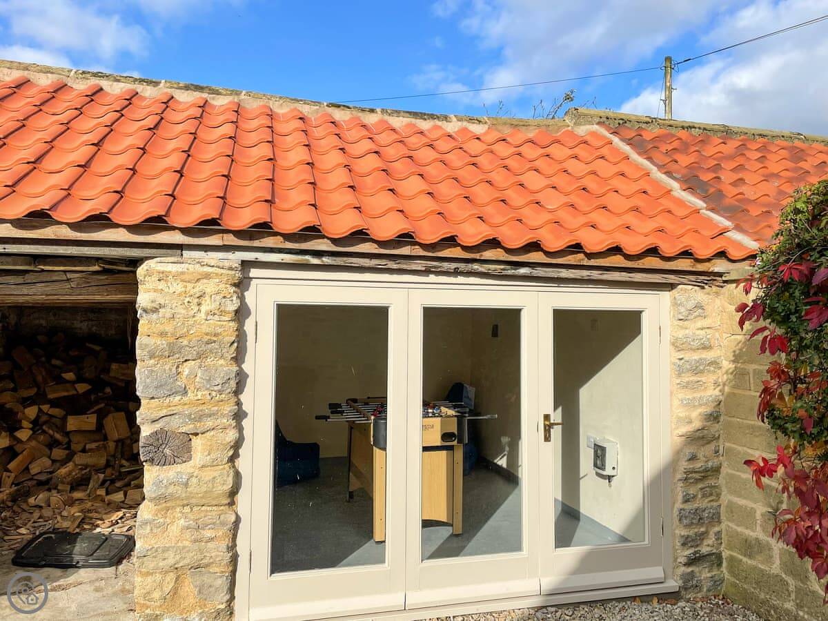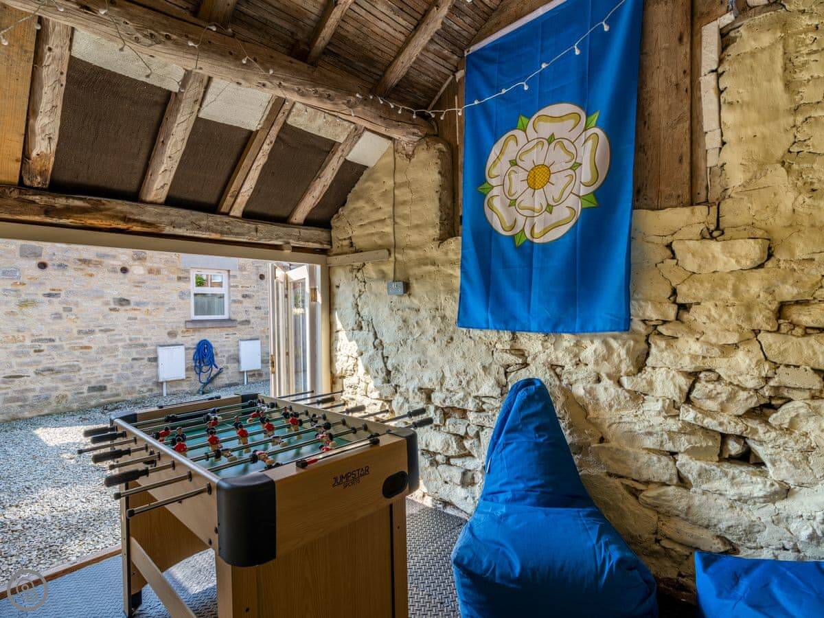 Outside, there's a separate games room with a football table. The garden is enclosed.