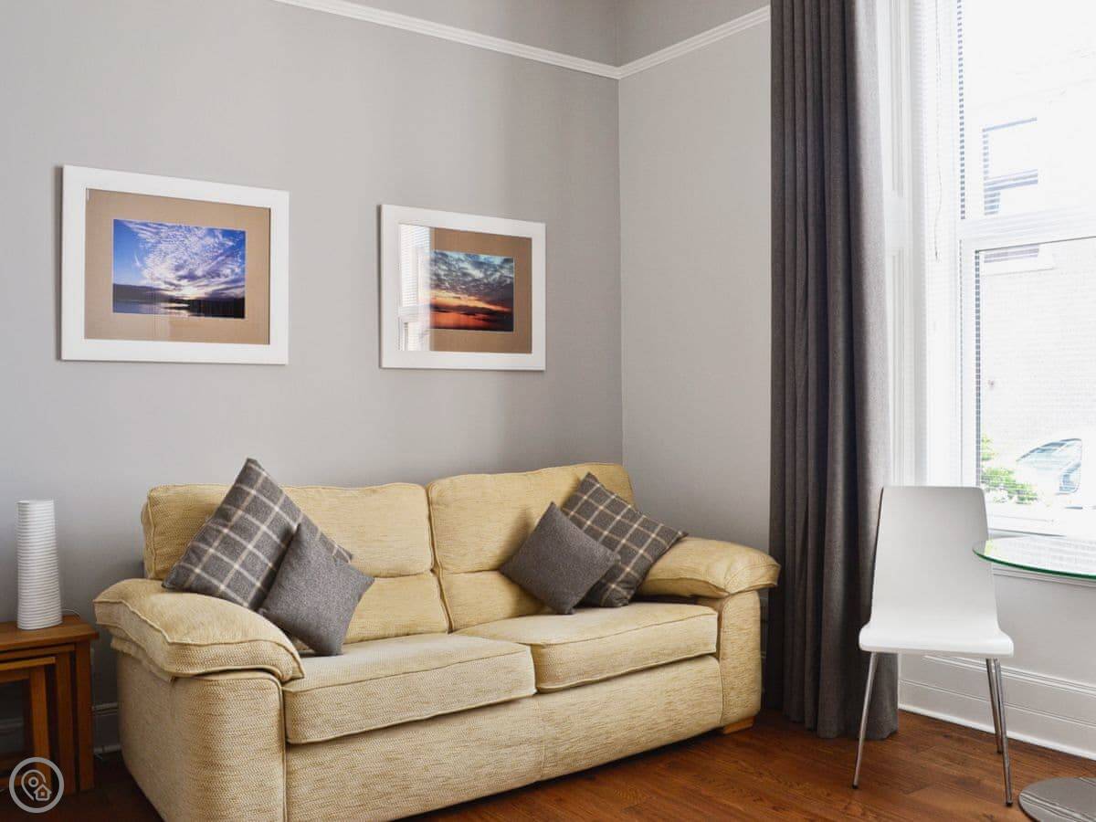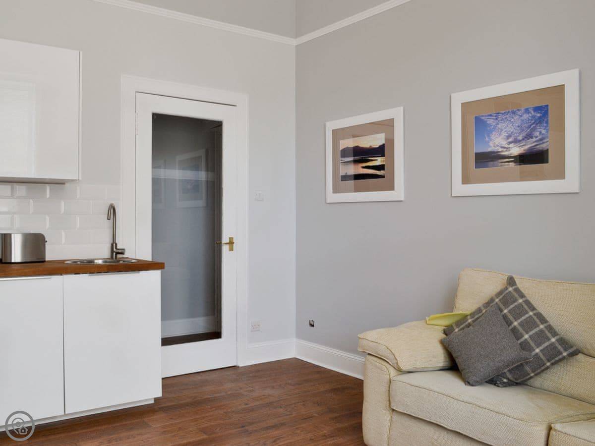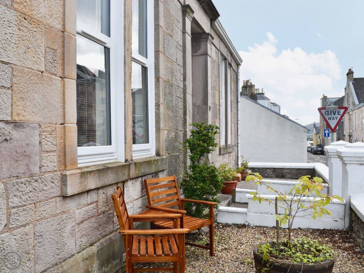 Island Escape is a ground floor flat in Millport, on the Isle of Cumbrae. It's about 100 yards from the water. You can see the bay from the front.