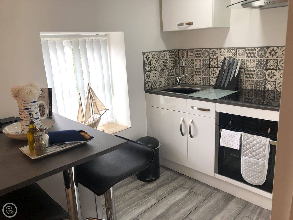 Facilities: there's parking on the gated driveway, a bicycle store, and an electric vehicle charger. WiFi, bedding, and towels are all included. You’ve got a patio with a table in the shared garden. There's a kitchenette with a proper oven and hob.