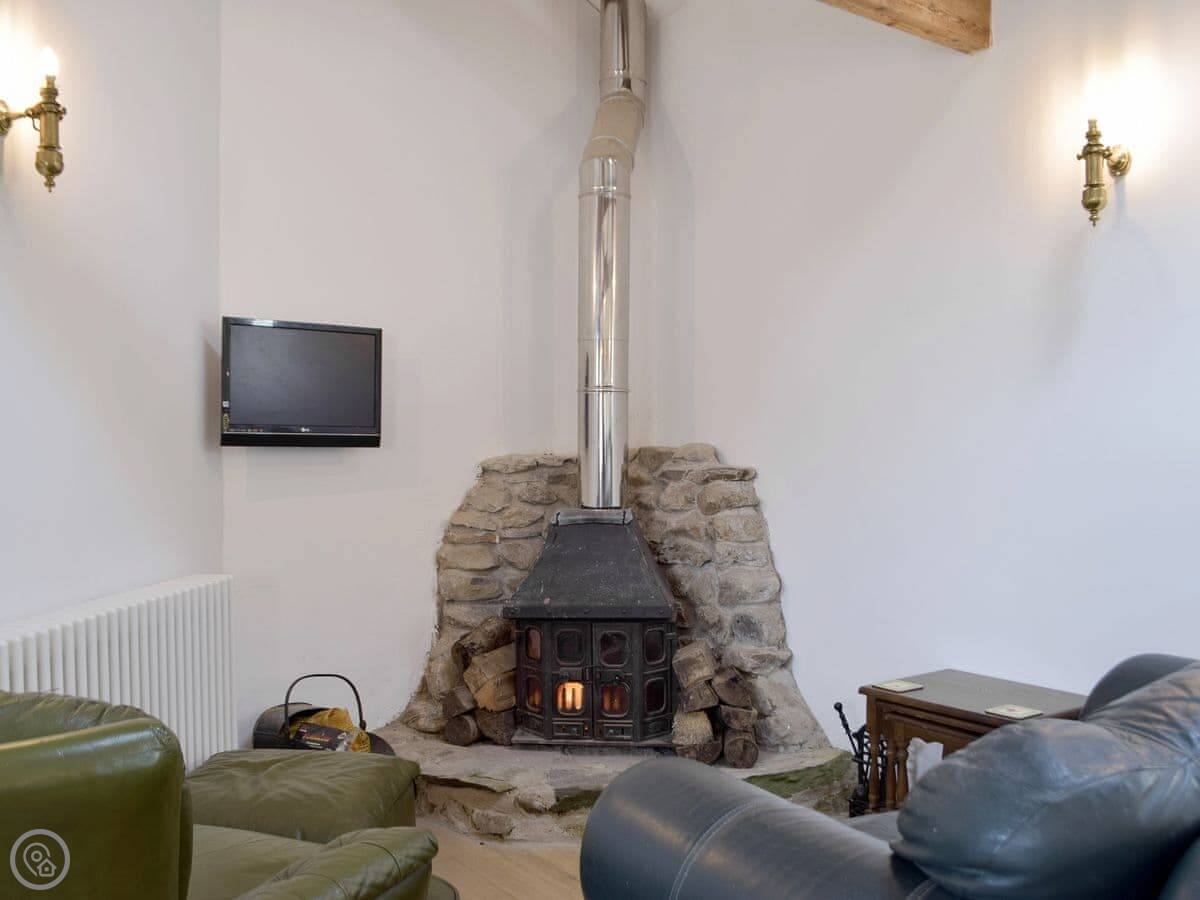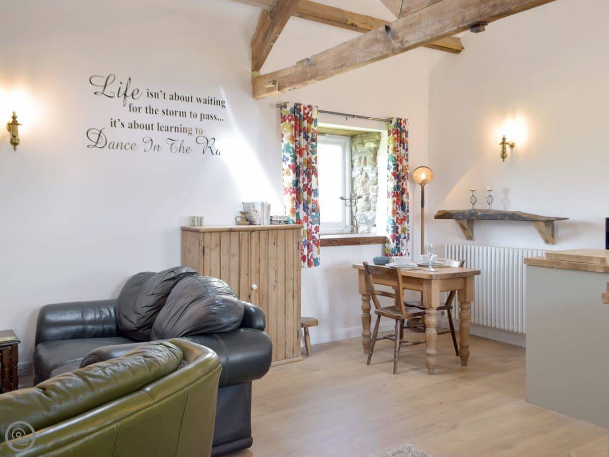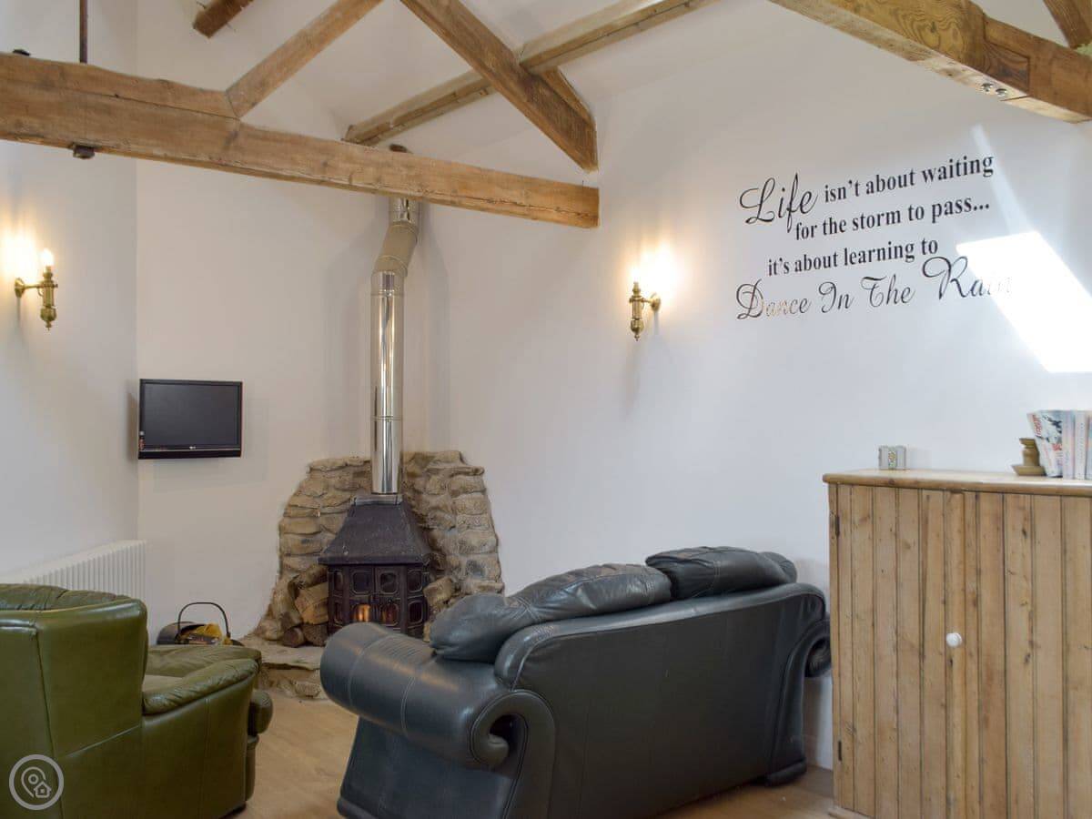 The rating is 4 Star. It's comfortable. There's one bathroom, it's ensuite off the bedroom. The kitchen is open plan with the living area. There's a wood burner. The ceilings are high.