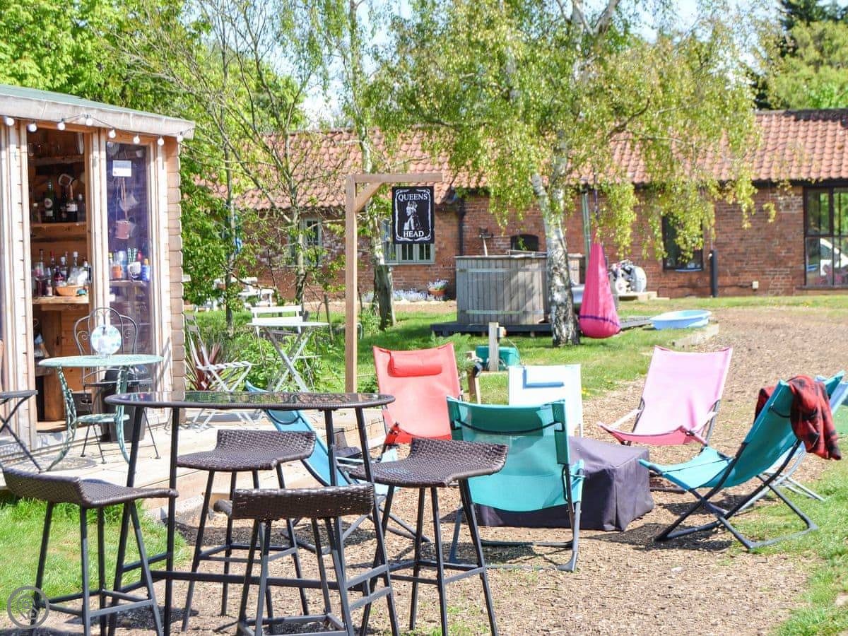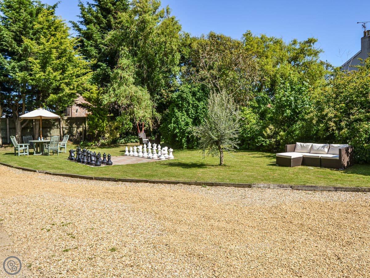 Guests are welcomed to enjoy shared use to the grounds and all its amenities including an outdoor swimming pool, six seater hot tub, wood fired hot tub, BBQ area with seating courtyard, or enjoy a game of giant garden chess. Why not visit the Queens Head, an on-site self-service honesty bar, and relax within one of the many seating areas enjoying both sunny and shaded areas located in the grounds. Fresh produce can be purchased from a local farm shop, or why not take advantage of the in-house chef services, have your meals cooked and prepared on your behalf, pre-booking essential and charges apply.
