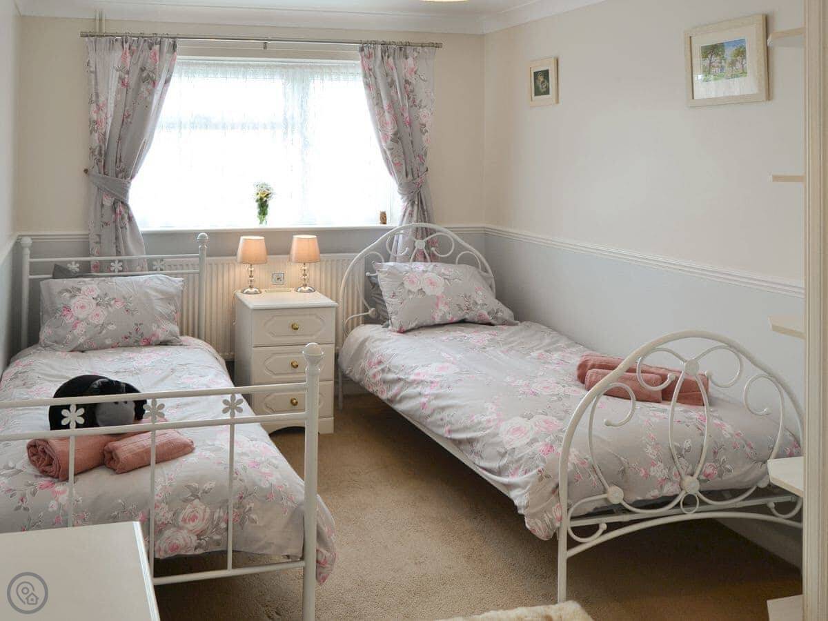 It sleeps four. Two bedrooms, one bathroom. One bedroom has beds you can zip together into a big double. It's got a 4 Star rating, so it's comfortable and well looked after. The bathroom was redone last November.