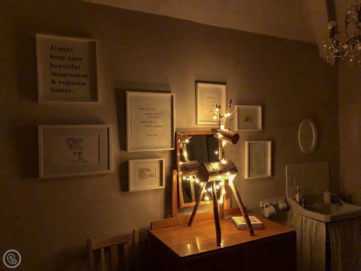 Facilities: it has Wi-Fi, a washing machine, a cot and highchair. Bedding and towels are included. On-site parking. It's set up for Christmas if you book then.