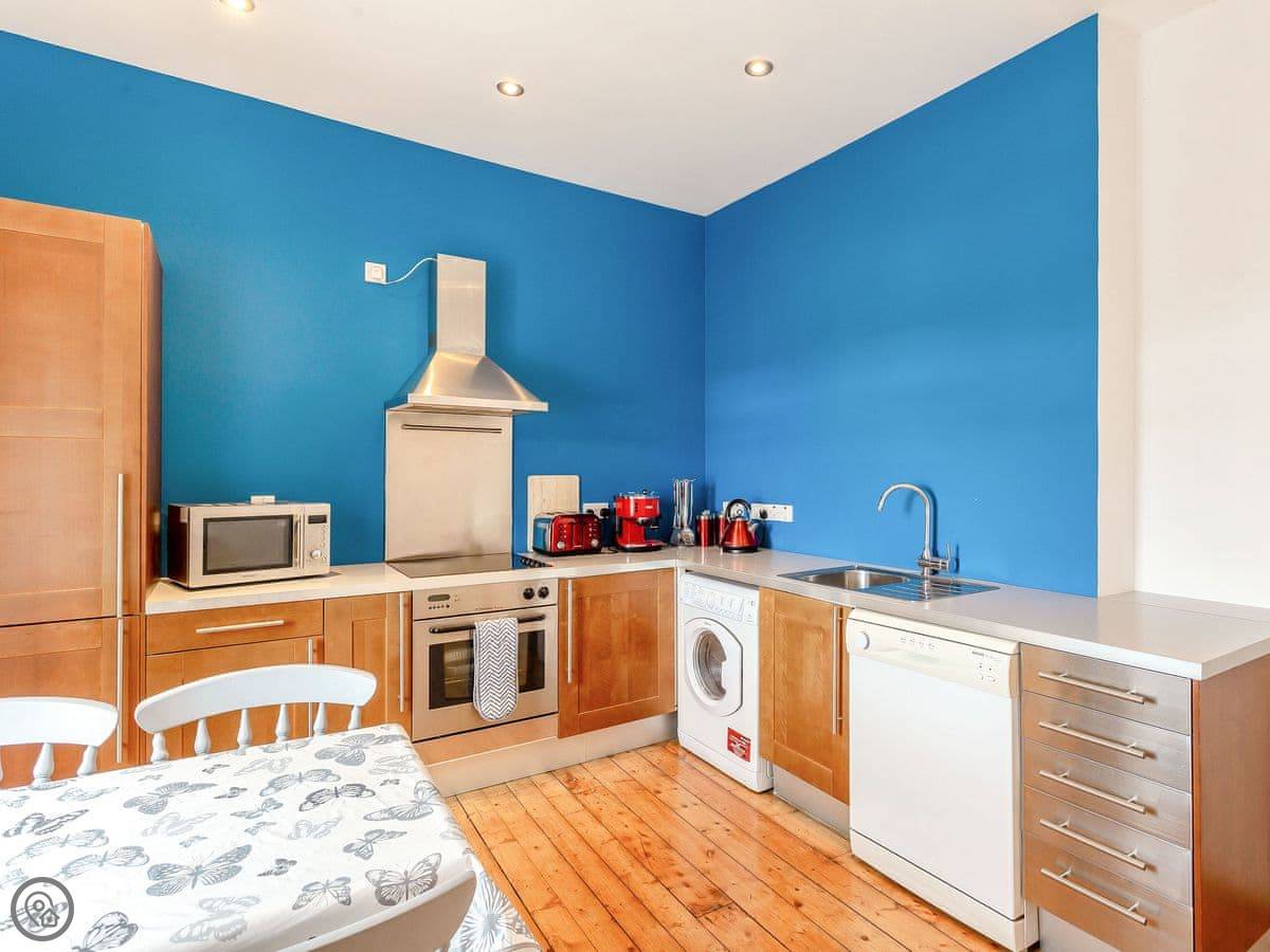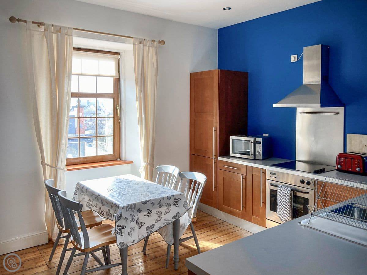 Station Square in Brora is where you will find Strathnaver Apartment. It makes up a large part of the first floor of a beautiful mid-19th century building. The private front door on the ground floor leads straight in and up the stairs to the accommodation on the first floor. The long, spacious hallway starts with the bathroom, finished with slate and consisting of large shower and a stunning bath. There are two double bedrooms, both king-size, one of which is a beautiful wooden sleigh bed. Throughout the property you will notice lovely pieces of furniture cleverly selected by the owners. There’s a beautiful Ogee chest of drawers that would’ve originally been used as a linen cupboard, but more interestingly has a secret compartment. Beyond the bedrooms there’s a lovely double aspect living room complete with large wood burner. Once again there’s a very interesting piece of furniture: an old piano that has been converted into a drinks cabinet. It doesn’t disappoint and comes complete with an honesty bar. The kitchen/dining room is a large room and has everything you’ll need to rustle up food after days out exploring near and far. But even though it’s a good kitchen for cooking all your meals, there are many good places to eat out in Brora, nearby Golspie and also other towns and villages in this part of the Highlands.