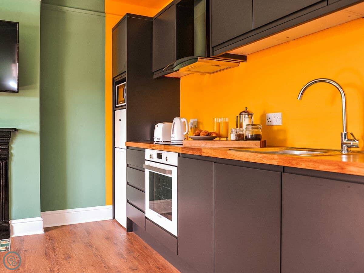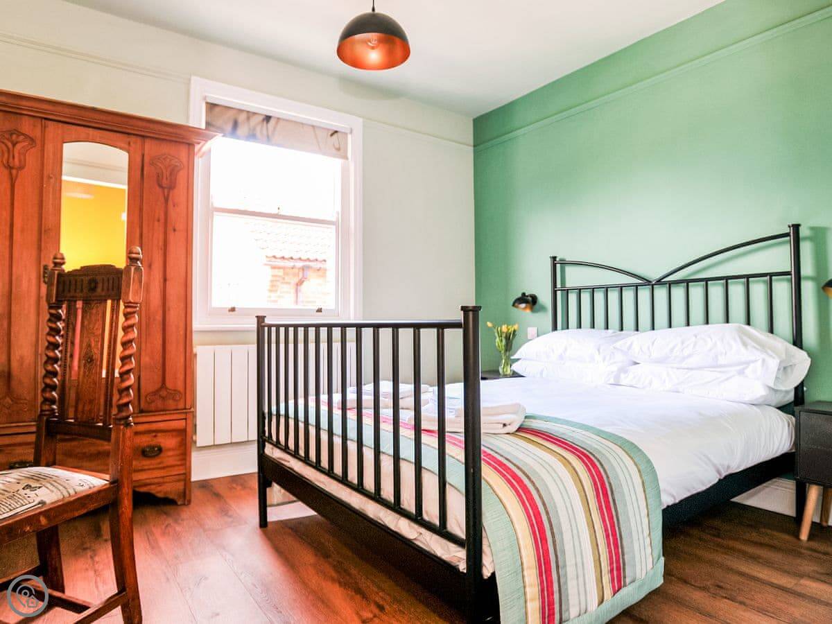 Located on the first floor, accessed by a wide Victorian staircase, the Holst Apartment features high ceilings, original sash windows and plenty of character. While the décor boasts a modern feel, it has been inspired by the Regency era of Gustav Holst’s birth, featuring colours that nod towards the palette at the turn of the turn of the 20th century. This creates a soft, relaxing, and inviting space.