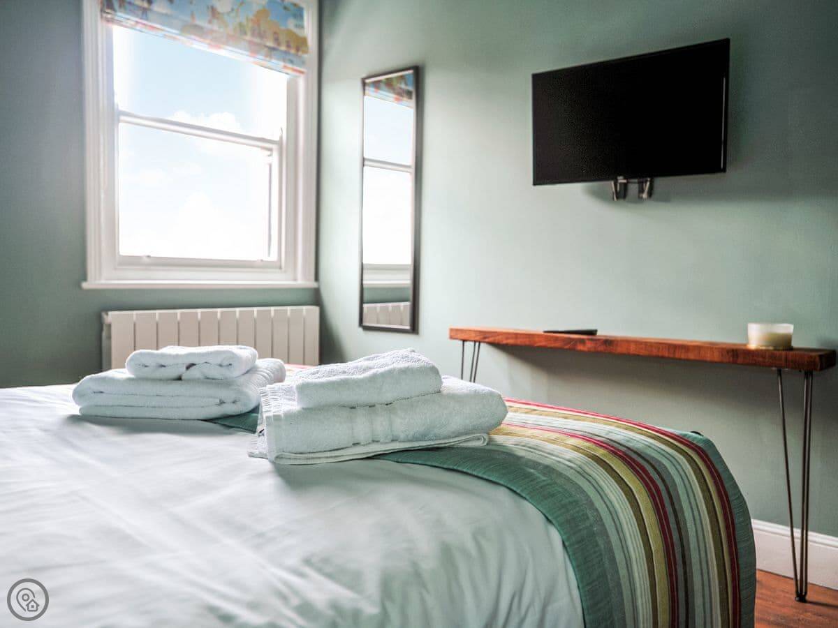 It's for two people, one bedroom and a bathroom. Got a 4 Star rating. It was all done up a few years ago, so it feels fresh. The ceilings are high and the windows are the original sash ones, so they can be a bit draughty but they look right.