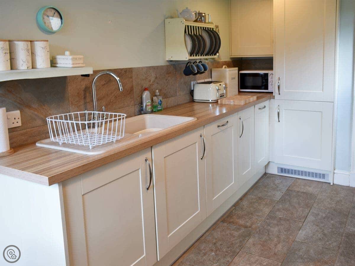 The house has a wood burning stove, which is good for cooler evenings. There's a dishwasher and a washing machine. Bedding and towels are included. One well-behaved dog is welcome. There's on-site parking for one car. The entrance has wheelchair access, but the rest of the house is over two floors with the stairs I mentioned.