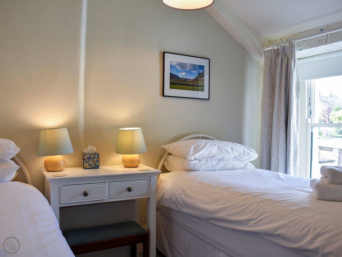 Hey Down is in Keswick, a few minutes walk from the main street. It's a terraced house, built from local stone. There's a small enclosed garden out the back. You get a view of the fells from the front.