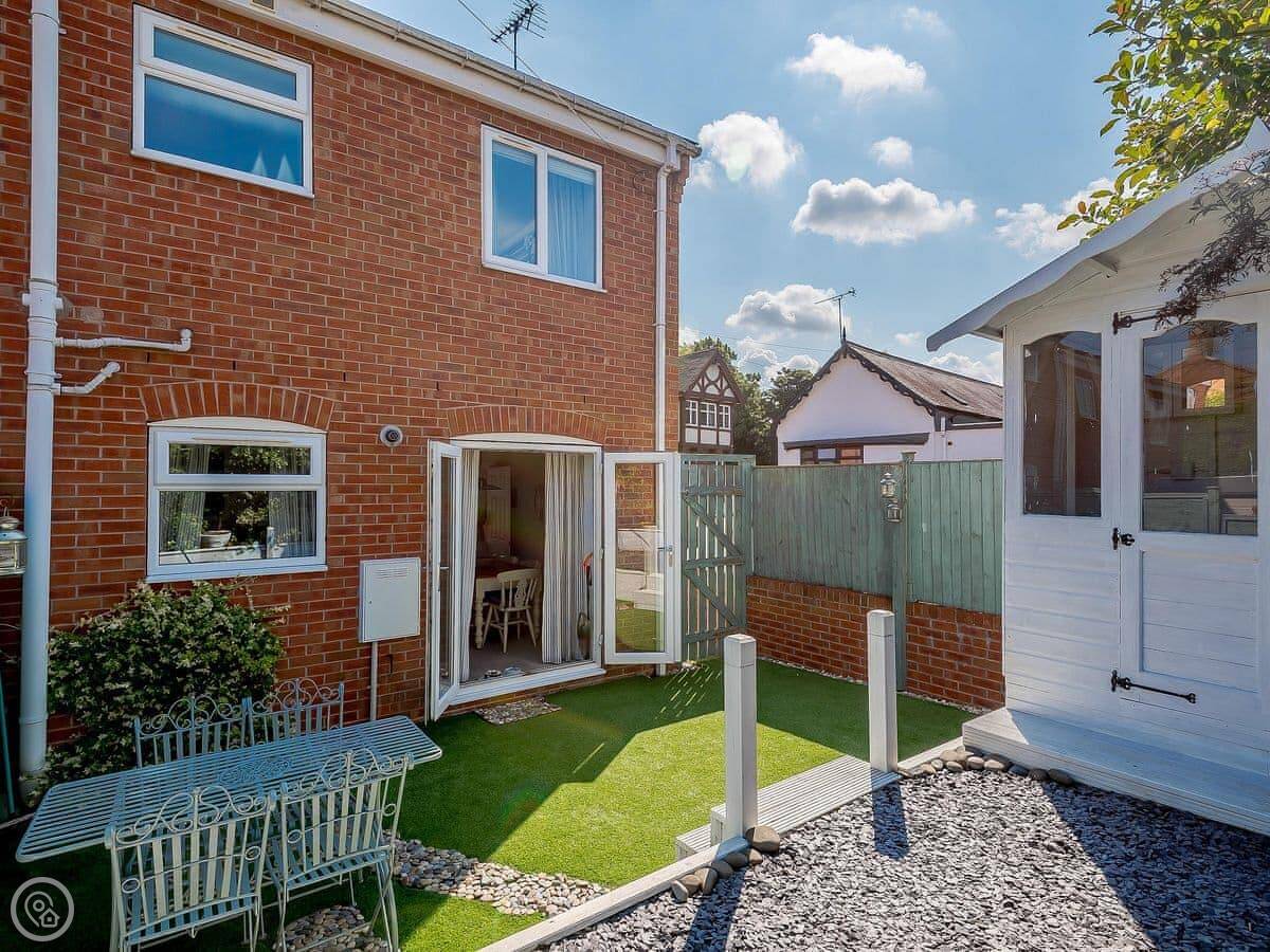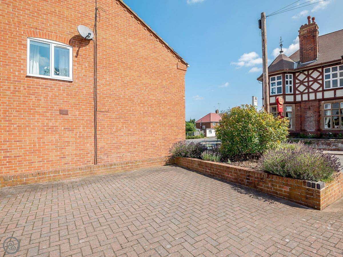 The garden has two levels, so there's a bit of space to sit out. You can park one car on the drive.