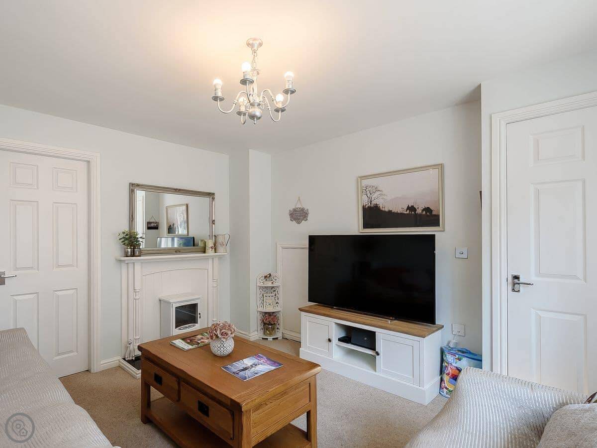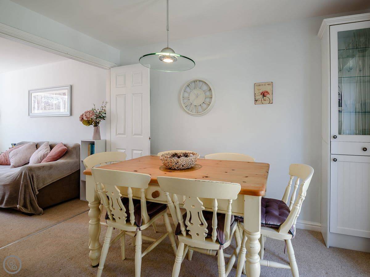 Inside, it's got a washing machine, WiFi, and a TV. Bedding and towels are included. There's a cot and a highchair if you need them. It's set up for Christmas if you book then.