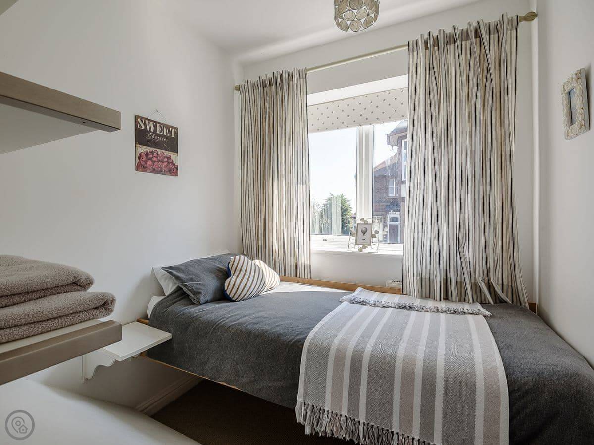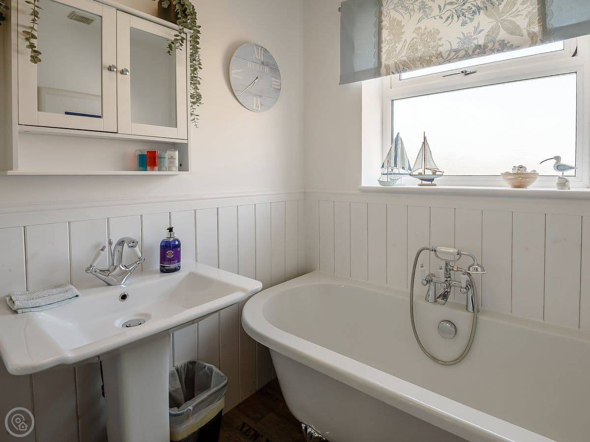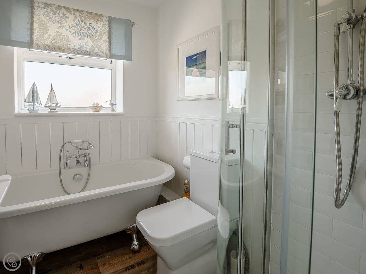 It sleeps five people. Three bedrooms, one bathroom. There's a bath and a separate shower. It's got a 4 Star rating. It's comfortable and well looked after.