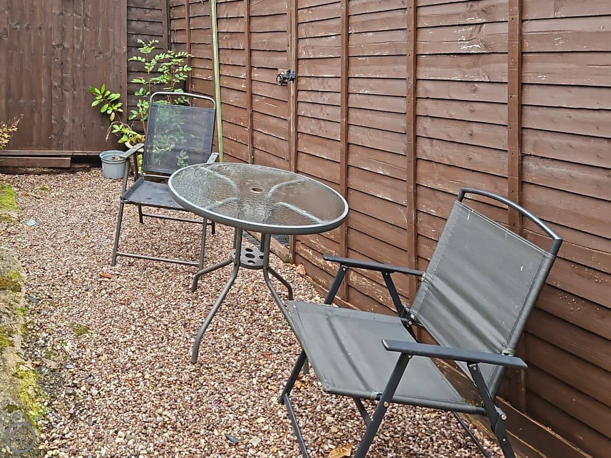 It's modern inside, all open plan. There's a kitchen and living area, then the bedroom and a shower room. Outside is your own little courtyard.