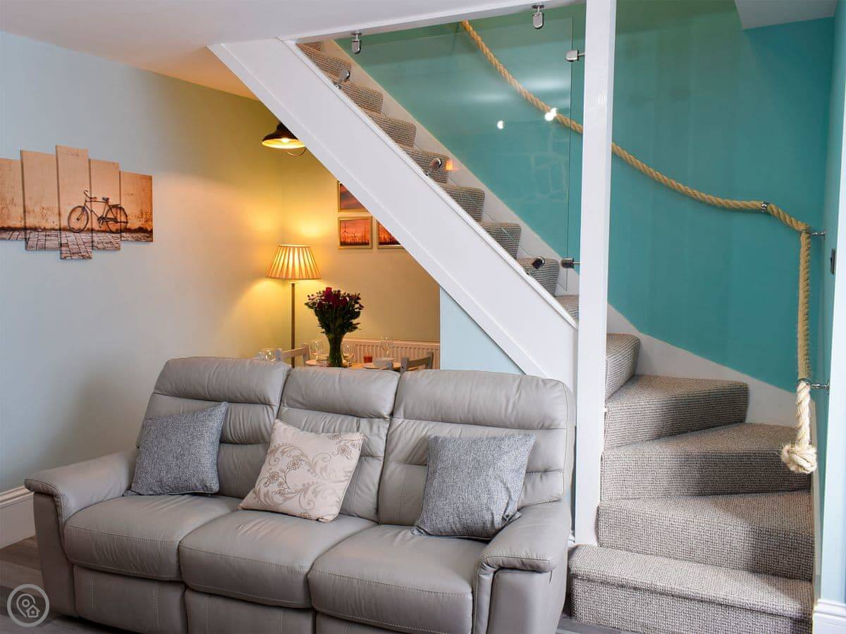 The cottage is a short walk from the high street and the harbour. You can leave the car. There's a small enclosed patio at the back.