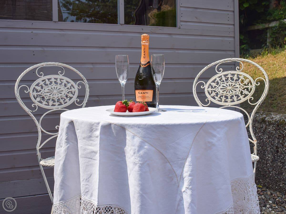 Outside is an enclosed patio with a table and chairs and a BBQ. It gets the sun in the afternoon.