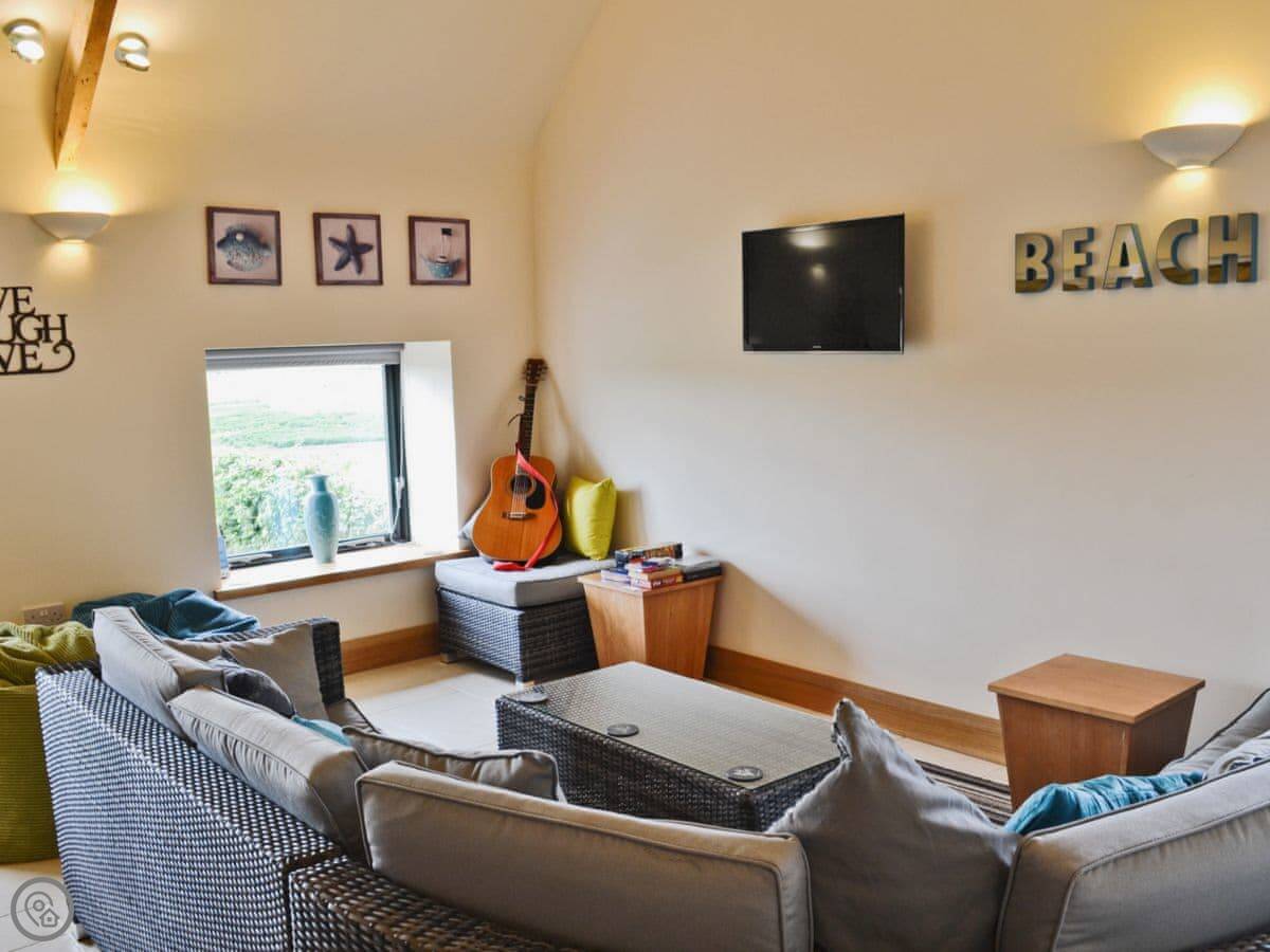 Excellently located for both summer beach holidays and relaxing winter escapes, this delightful 19th-century holiday cottage commands stunning views to Snowdonia and the Lleyn peninsula, as well as out to sea from its first floor light and airy open-plan living room. The cottage is situated in an Area of Outstanding Natural Beauty, adjoining the owners home. Within easy reach of fabulous long sandy beaches and the rolling sand dunes of the popular seaside resort Rhosneigr, a favourite destination for families and water sports enthusiasts, with a sailing club and a kite/windsurfing school. The island of Anglesey is a paradise for walkers and bird watchers, and golf and tennis are available nearby. A fine selection of shops, cafes and restaurants are close by. Beach ½ mile. Shop 500 yards, pub and restaurant ½ mile.
