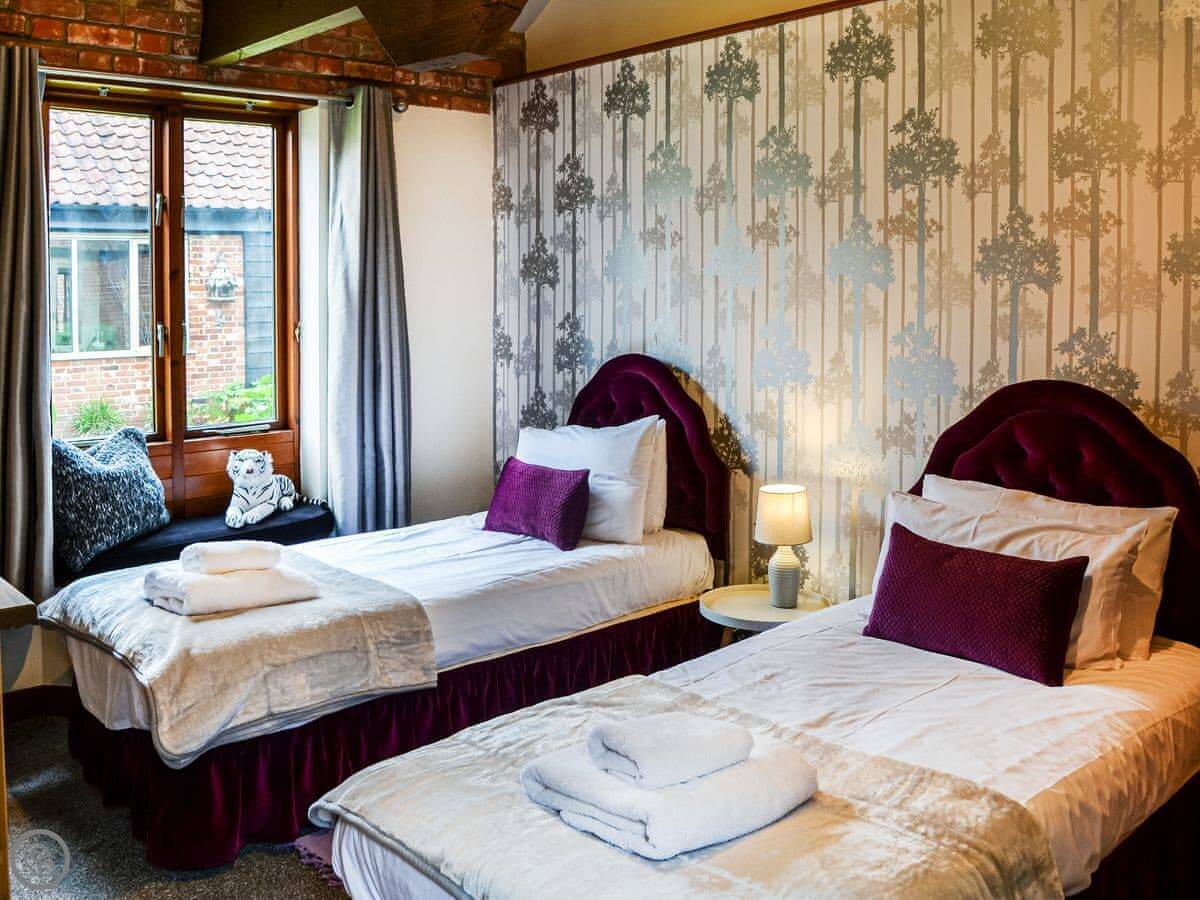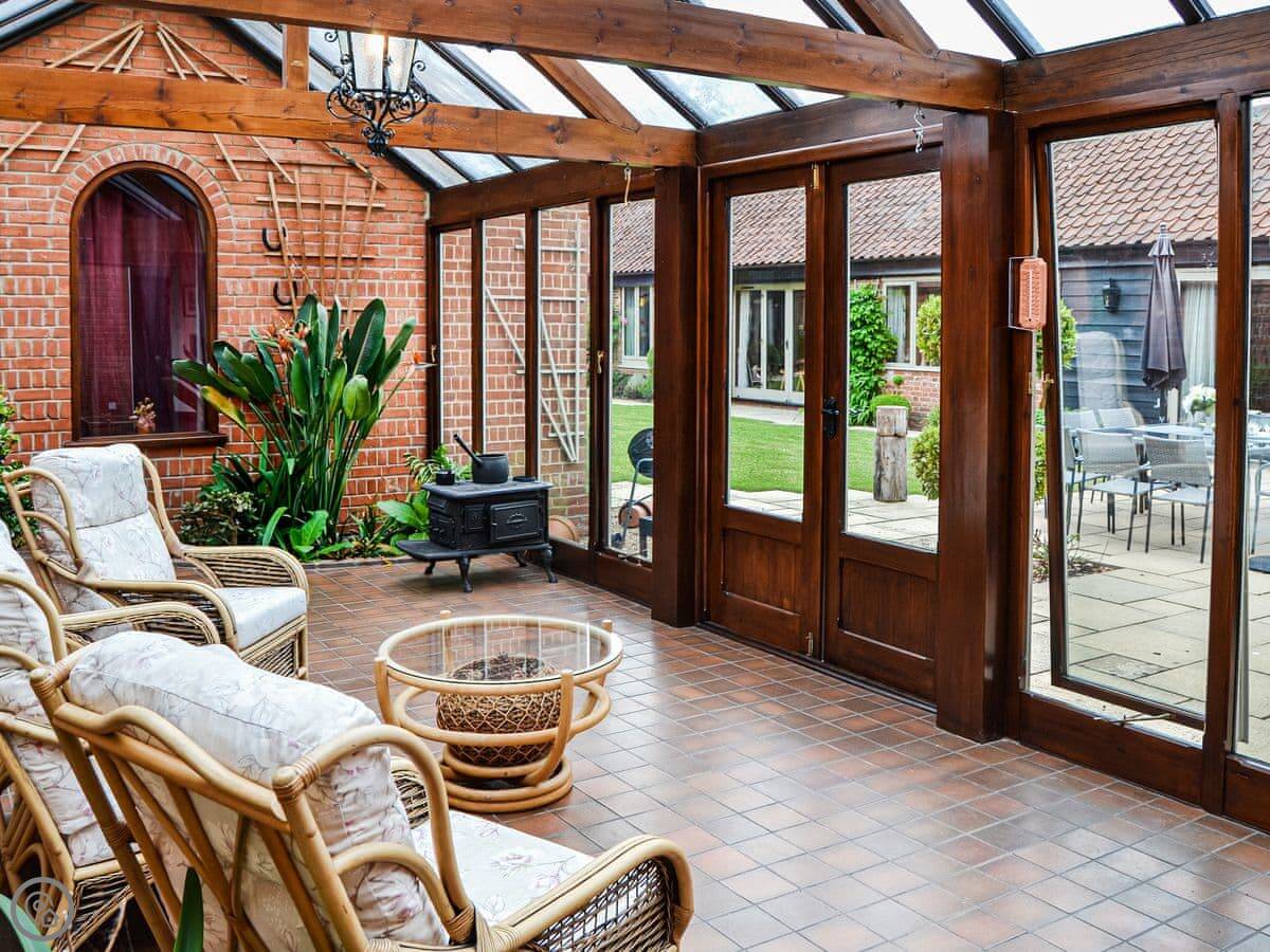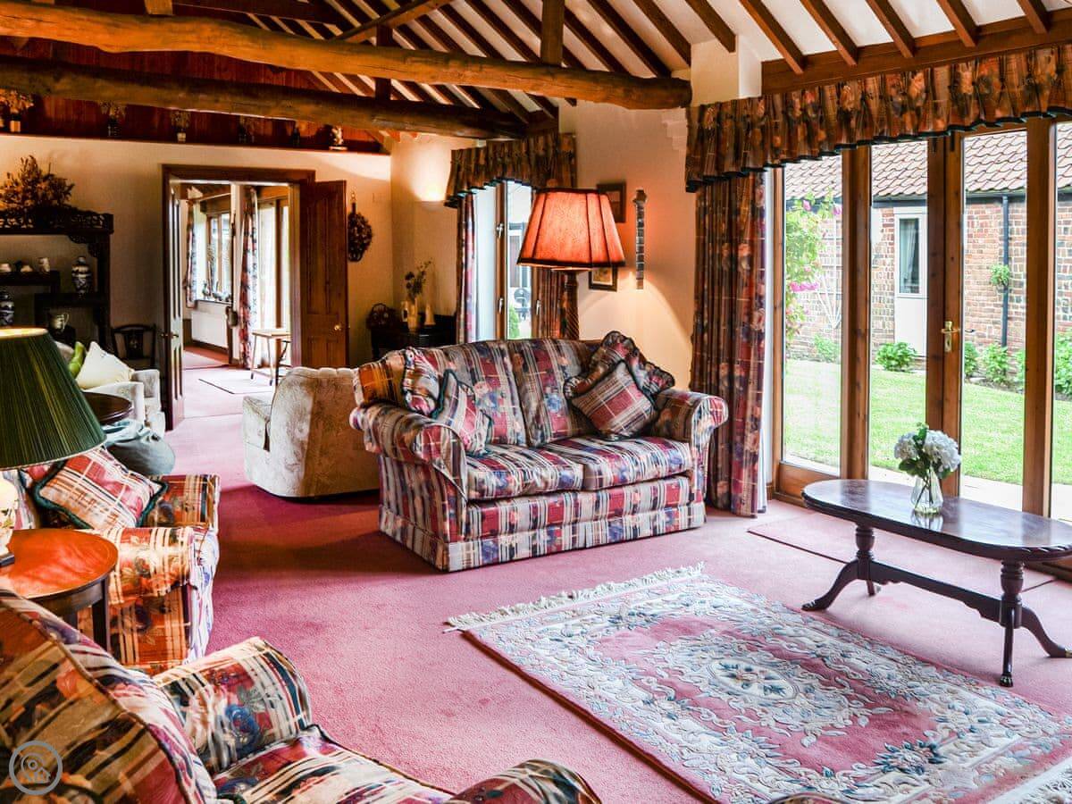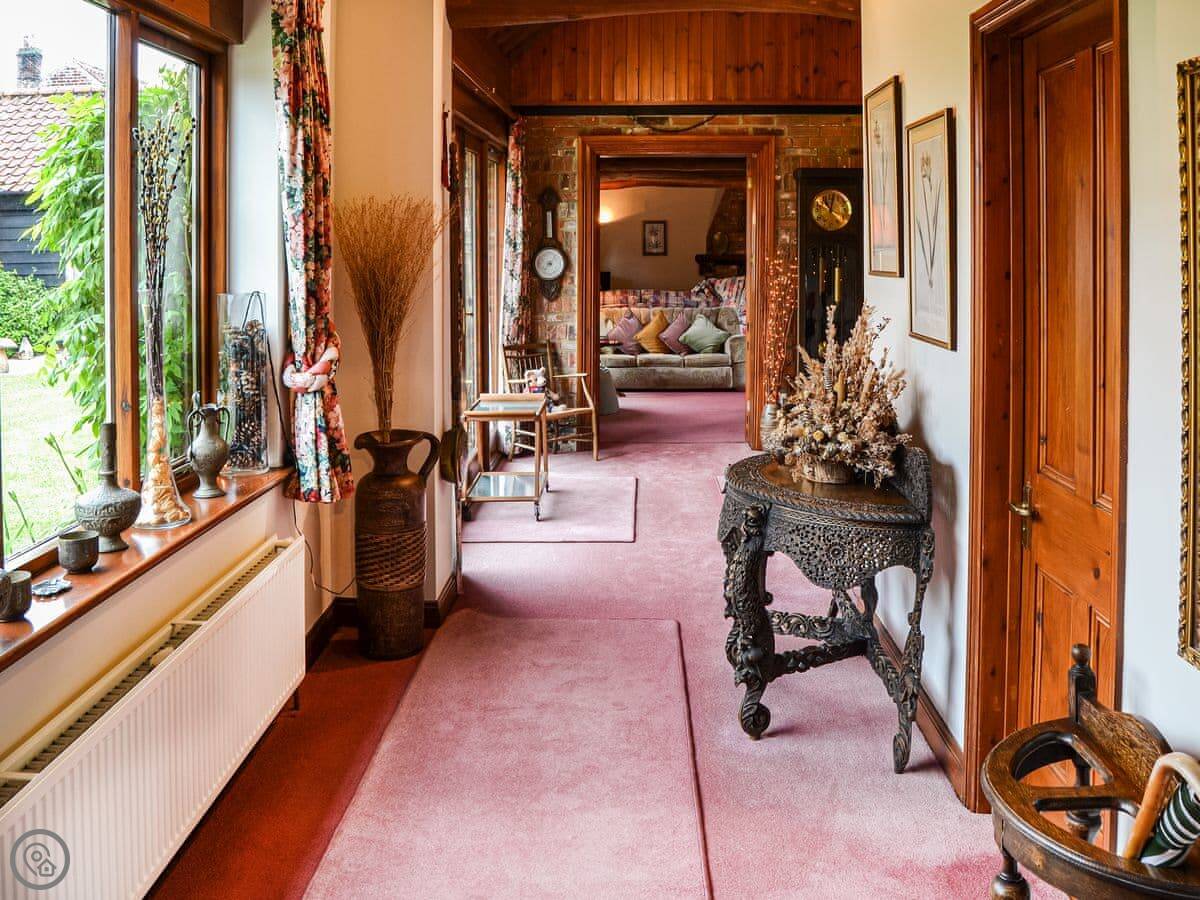 A wonderful home ideal for social gatherings and any special occasion. Boasting a hot tub and large wrap-around landscaped gardens with enclosed central courtyard garden, offer complete privacy. Perfectly positioned to explore all the delights of Norfolk, with its amazing coastline, wide sandy beaches and the famous Norfolk Broads National Park, a natural haven and habitat for wildlife. Sleeping 12 guests in 6 bedrooms, some with views of the courtyard, it is an ideal retreat for all generations, benefiting from no stairs. All doors open to the central courtyard garden. The kitchen has a breakfast table and extended lounge seating area, and the formal dining room is the perfect place to host any family celebration. There is a conservatory with great outlook across the garden. You can find games and seat cushions for the garden inside the utility room.