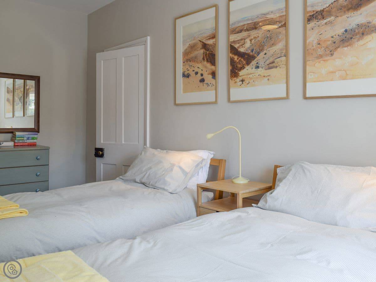 It's a 4 Star place, sleeps four. Two bedrooms and one bathroom. The living room has a wood burner, which is good in winter. You can use part of our garden, which gets the sun in the afternoon.