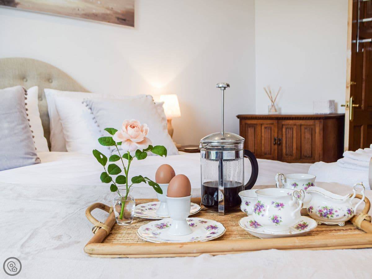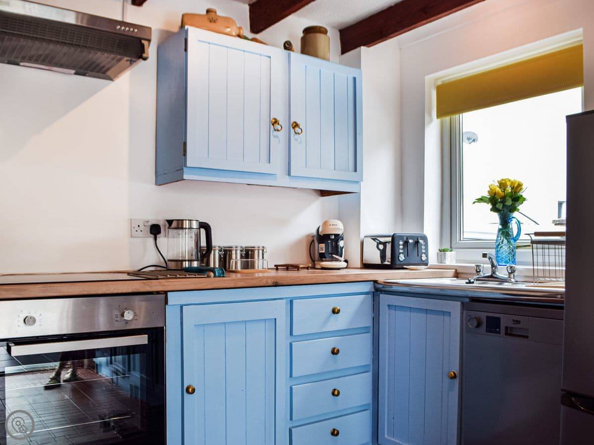 Facilities wise, you've got the wood burner, a dishwasher, washing machine, WiFi, TV, and parking for two cars on the drive. Bedding and towels are included. We can provide a cot, highchair, and stairgate. Up to two dogs are welcome. The garden is fully enclosed.