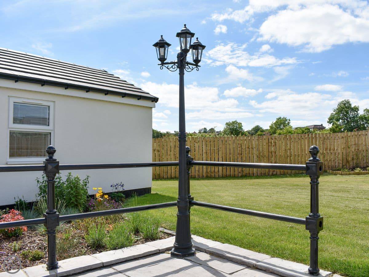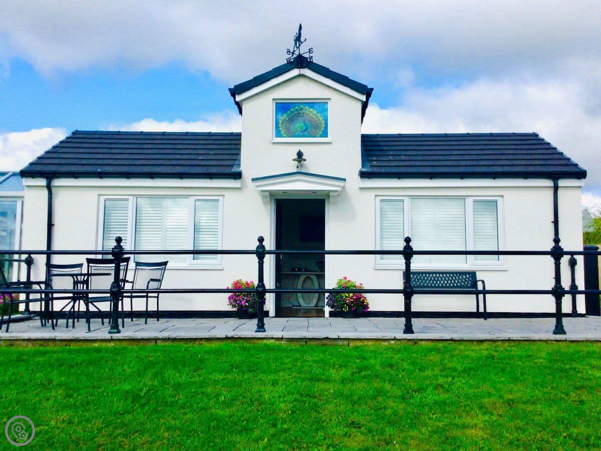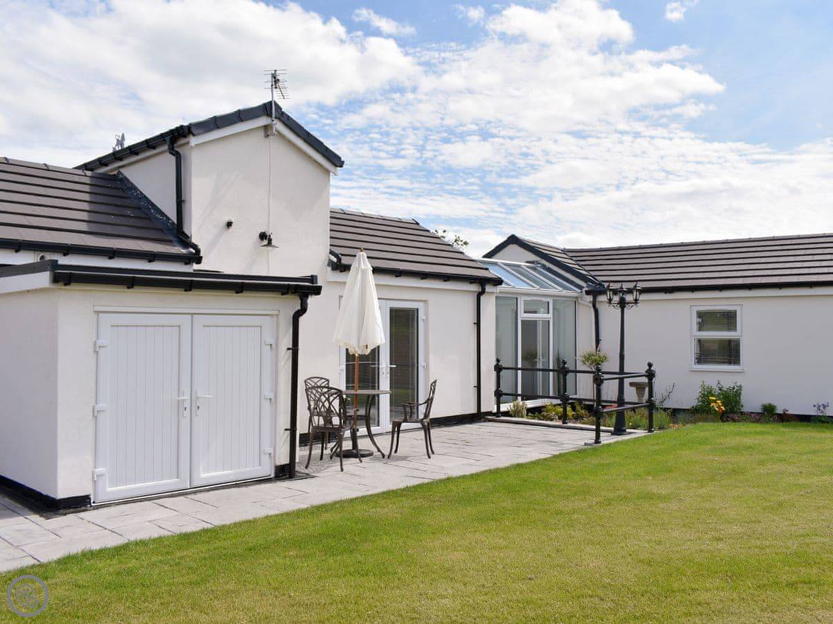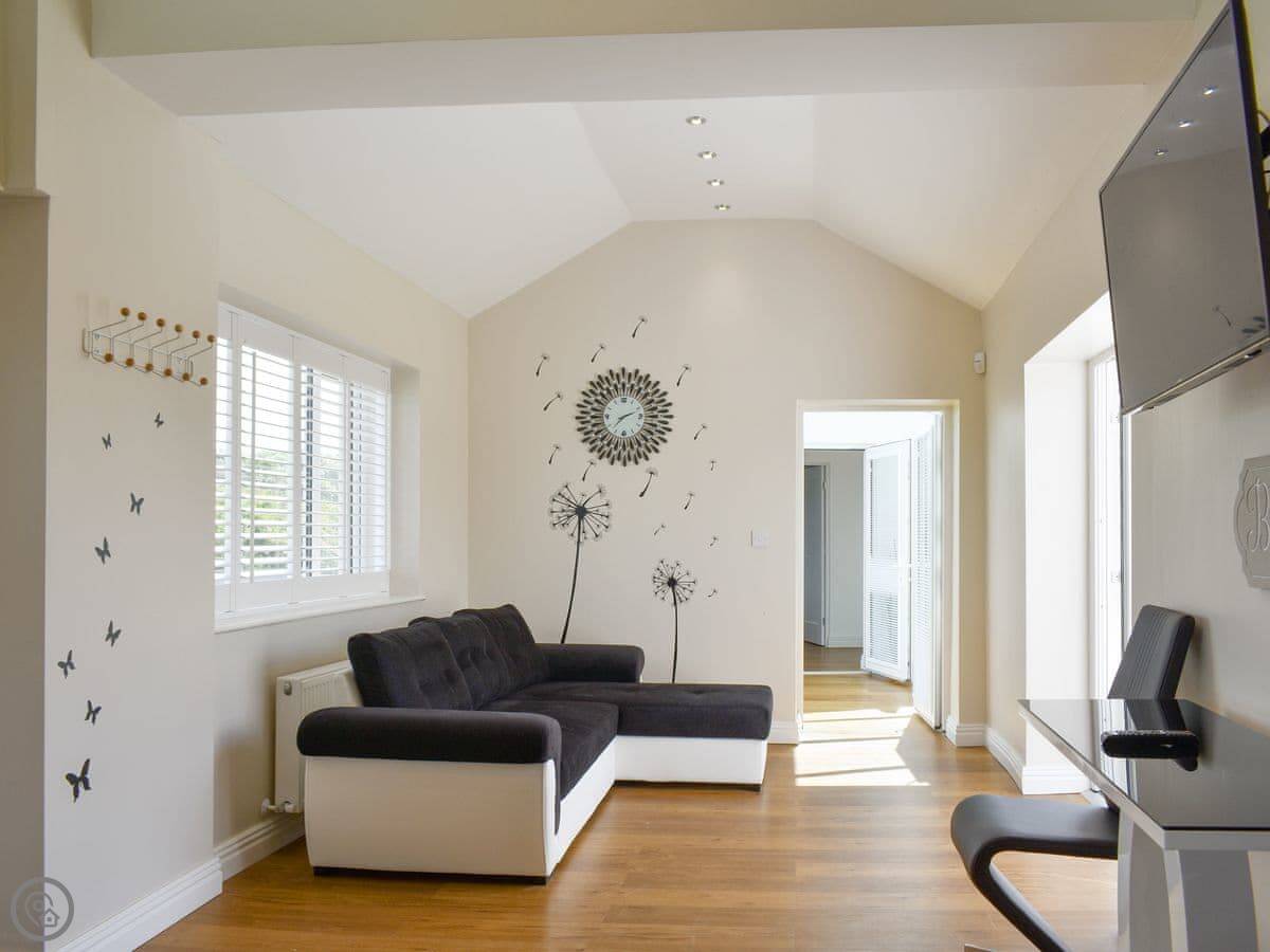 A beautiful light filled open plan living space with fitted kitchen, dining area and corner sofa which opens out as a double sofa bed if needed. Patio doors lead from here into the lovely private garden and sun filled patio set with table and chairs. To the front is a terraced area with seating looking out across the beautiful meadow. All adaptations are discreet, making this suitable for all uses. Guests will be able to use the electric full height, adjustable profiling beds and hoist, please bring your own sling or harness.