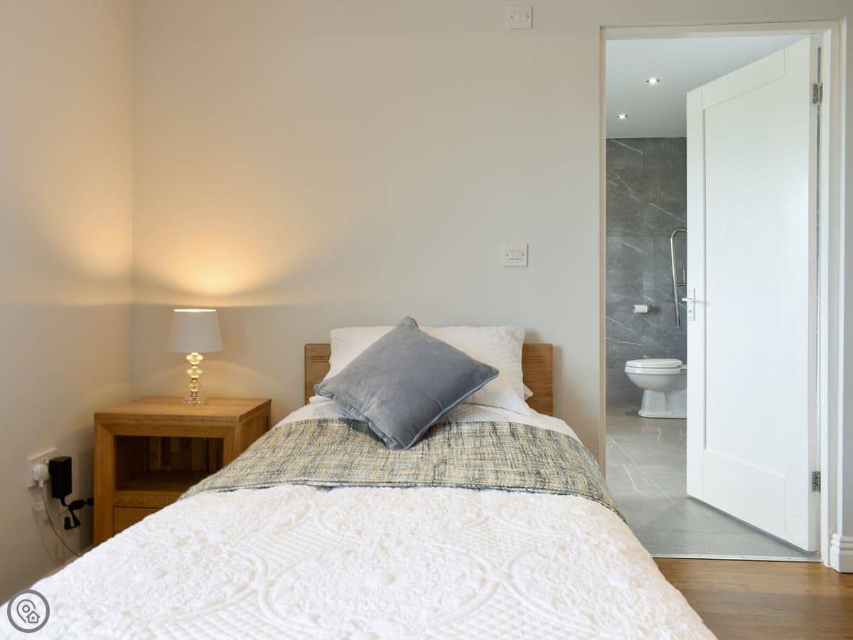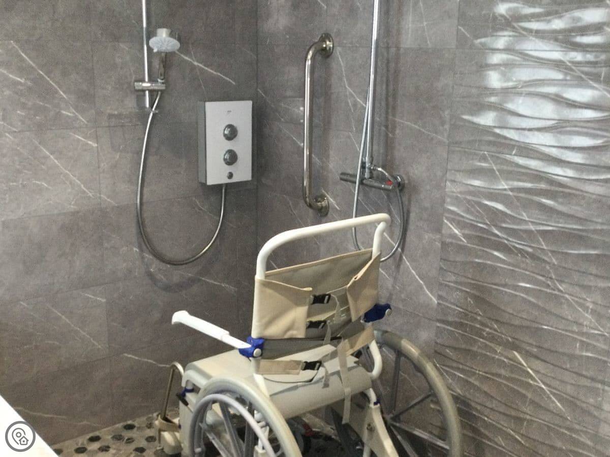 The main bedroom has two profiling beds, one a small double and a single 3ft an extra-large en-suite wet room with double shower, grab rails and a wheeled shower / commode chair available on request. The second bedroom has a double bed with an accessible en-suite shower room. Throughout, light switches and plug sockets are at an adjusted height to make them easy for anyone in a wheelchair to reach.