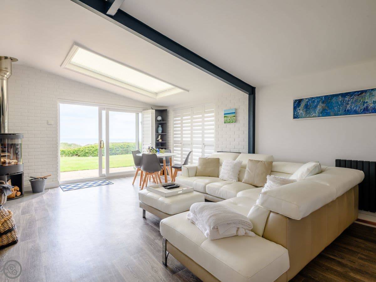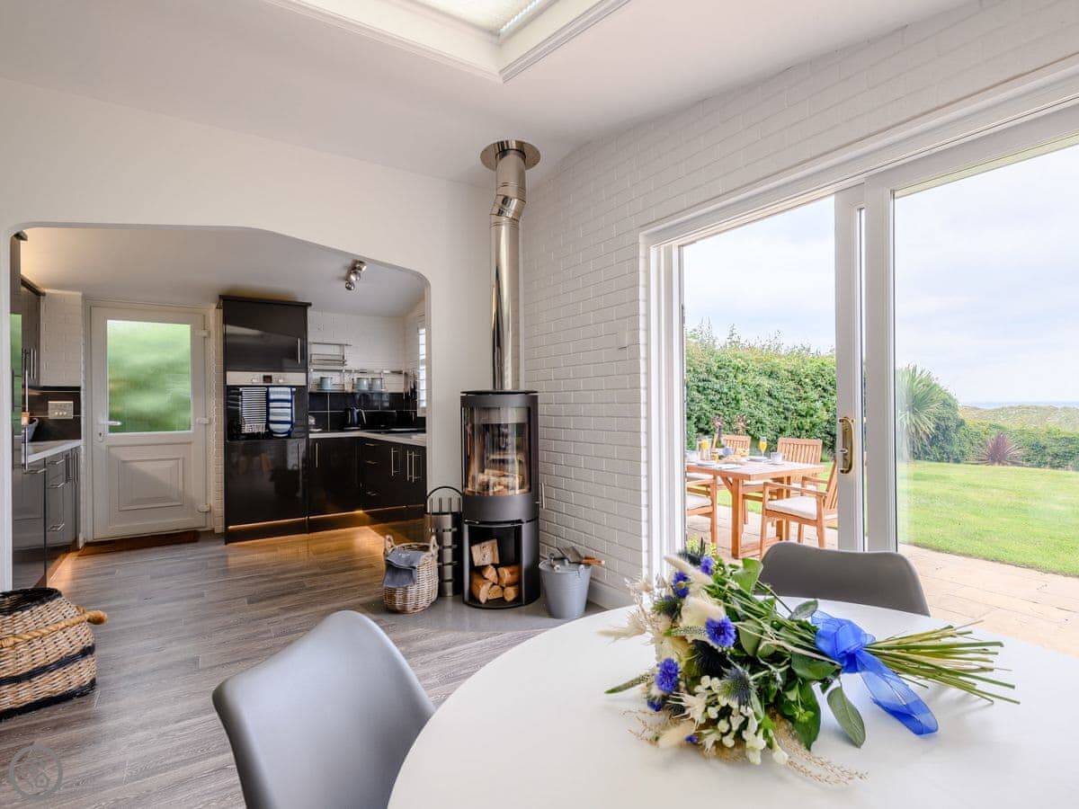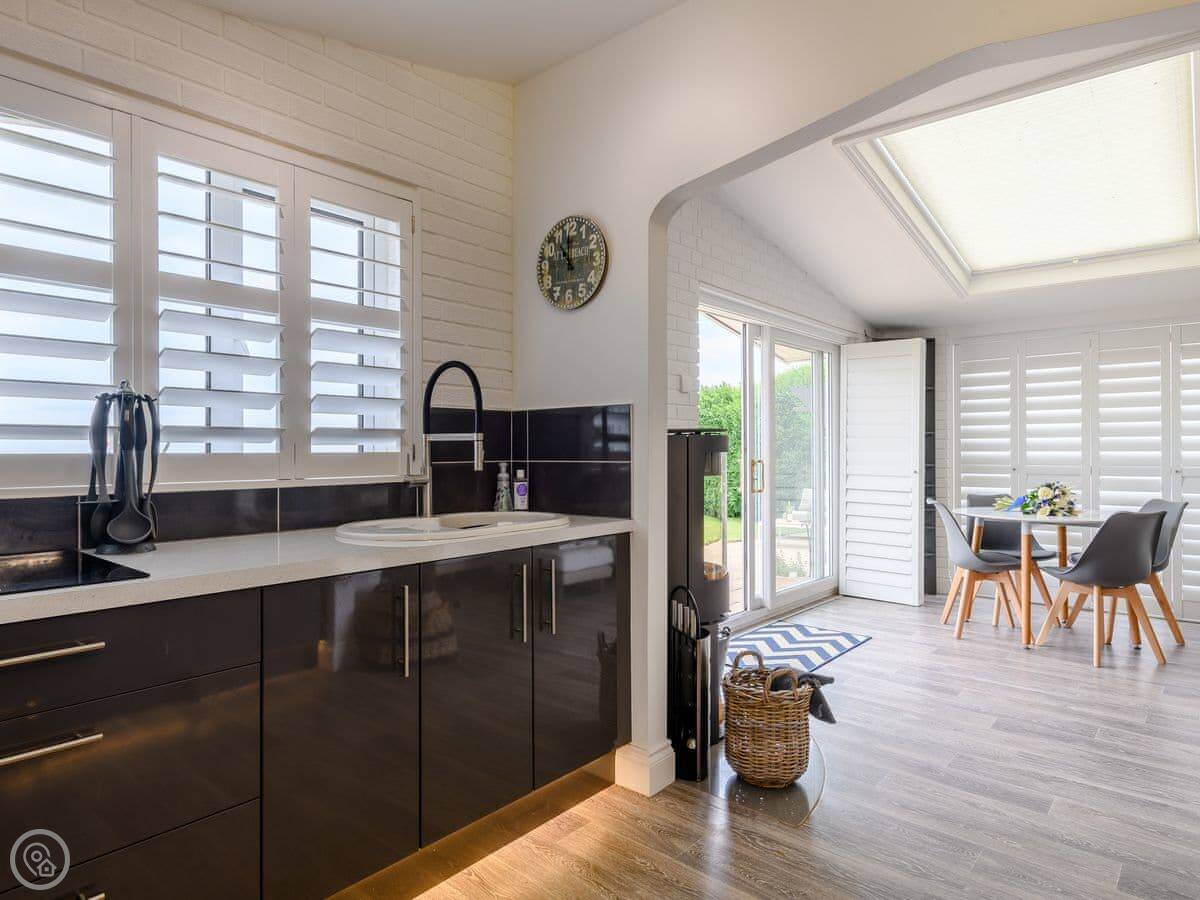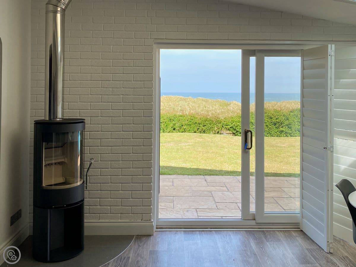 Inside it's all open plan with a wood burner. It has all the things you'd expect like a dishwasher and washing machine. Two well-behaved dogs are allowed.
