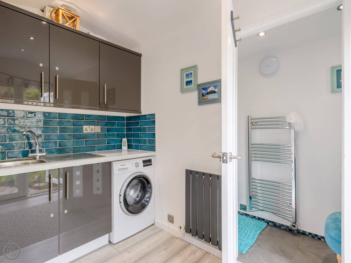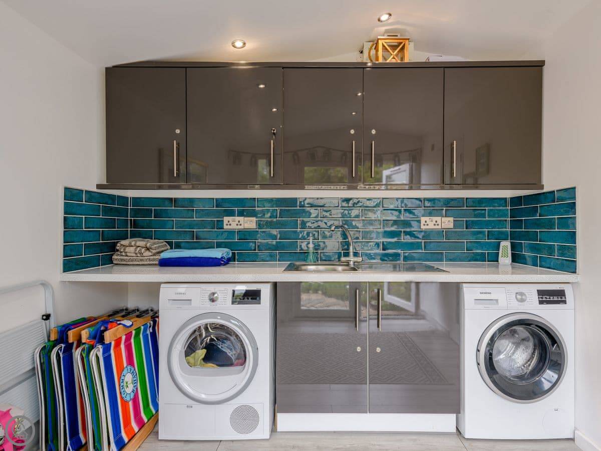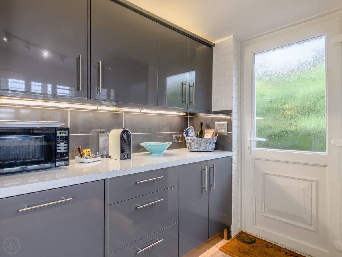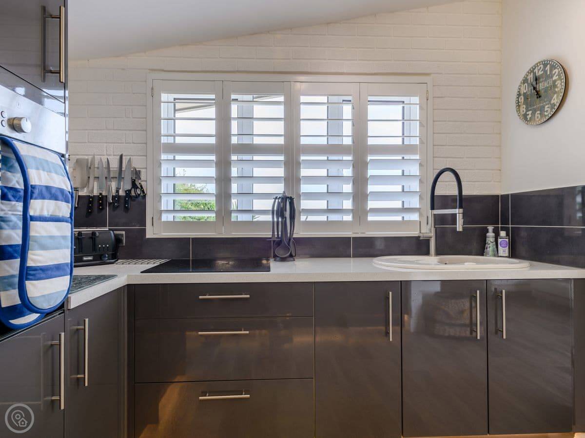 Inside it's all open plan with a wood burner. It has all the things you'd expect like a dishwasher and washing machine. Two well-behaved dogs are allowed.