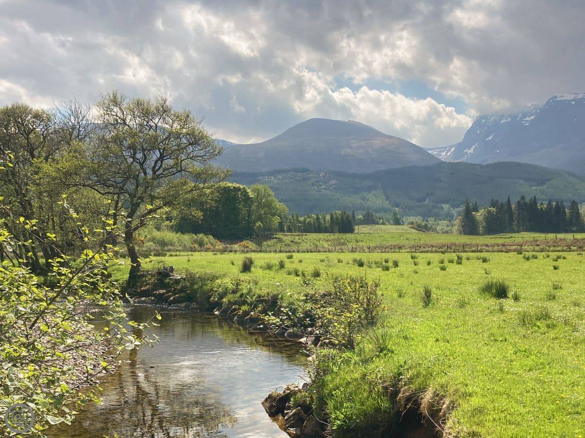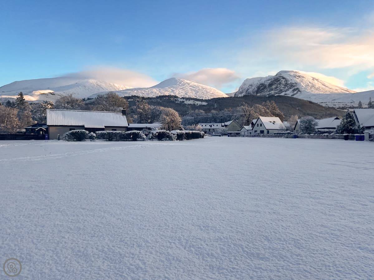For getting out, there’s a cycle path that runs from the door into Fort William, or the other way towards the Nevis Range ski and mountain bike area. That’s about three miles. You can walk from the flat down to the River Lochy. Glen Nevis is very close for gentler walks with good views and waterfalls.