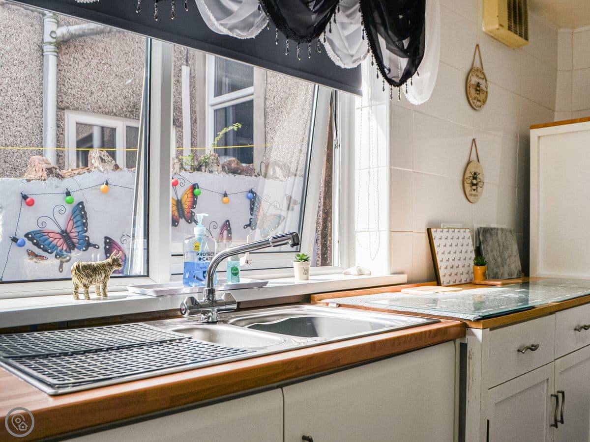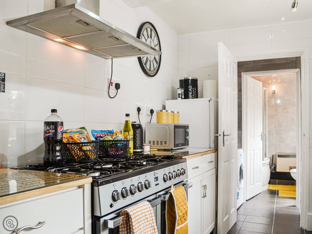 It's got a 3 Star rating. That means it's clean, comfortable, and has what you need. The kitchen is well set up with a big cooker, dishwasher, and a washer-dryer. There's a cot and highchair if you need them.