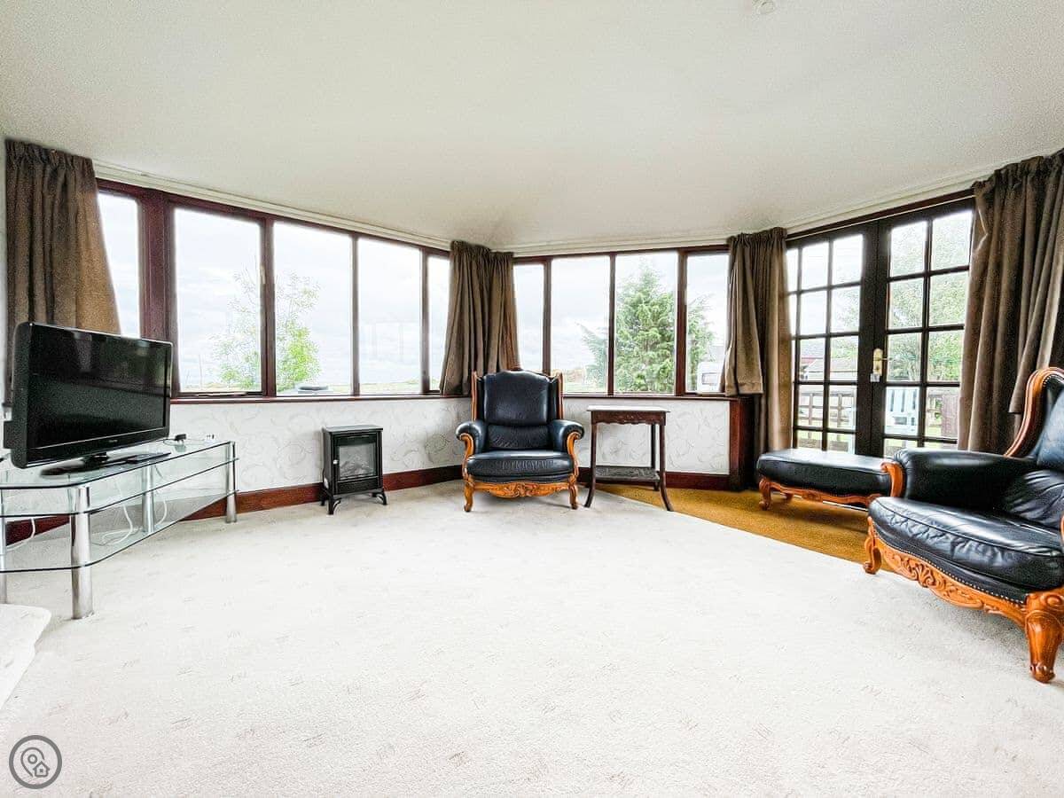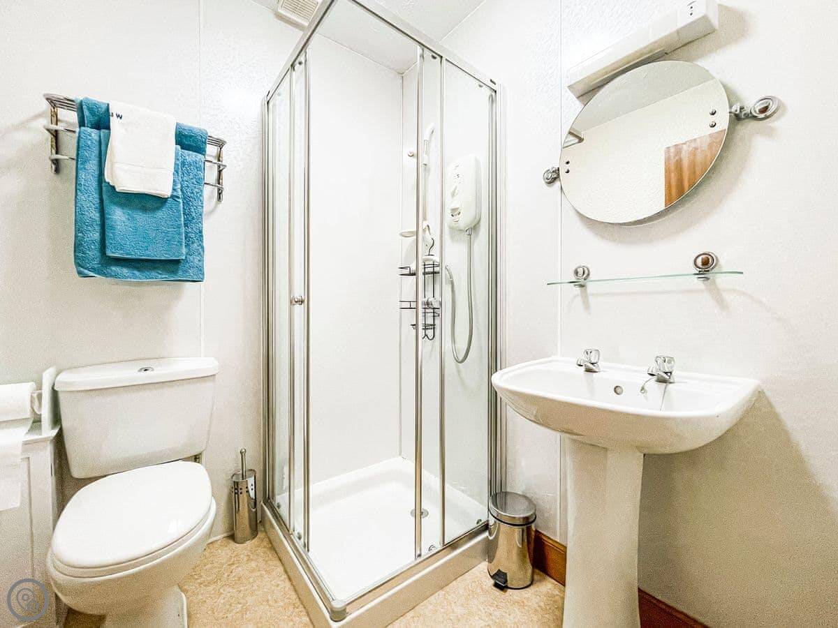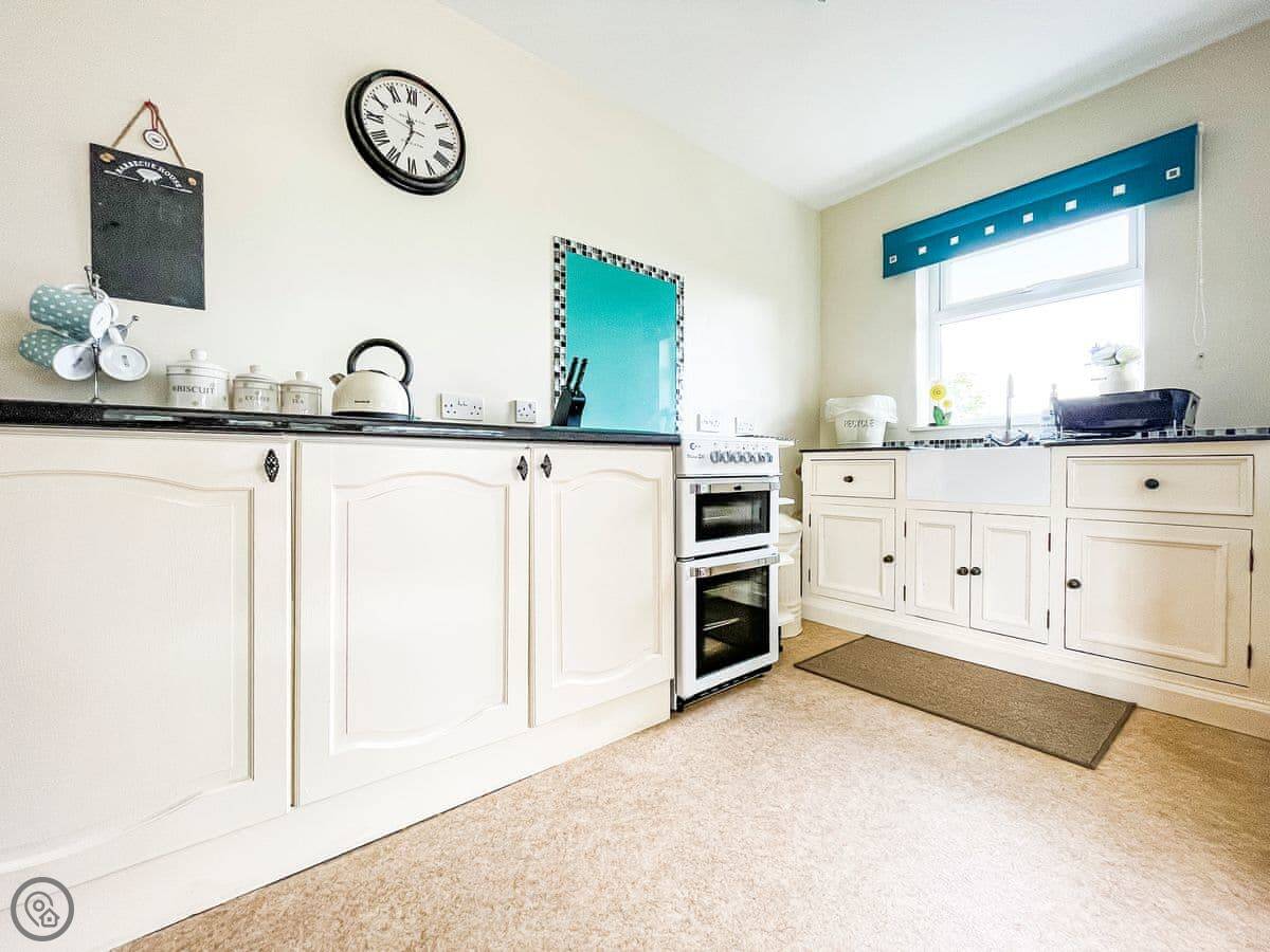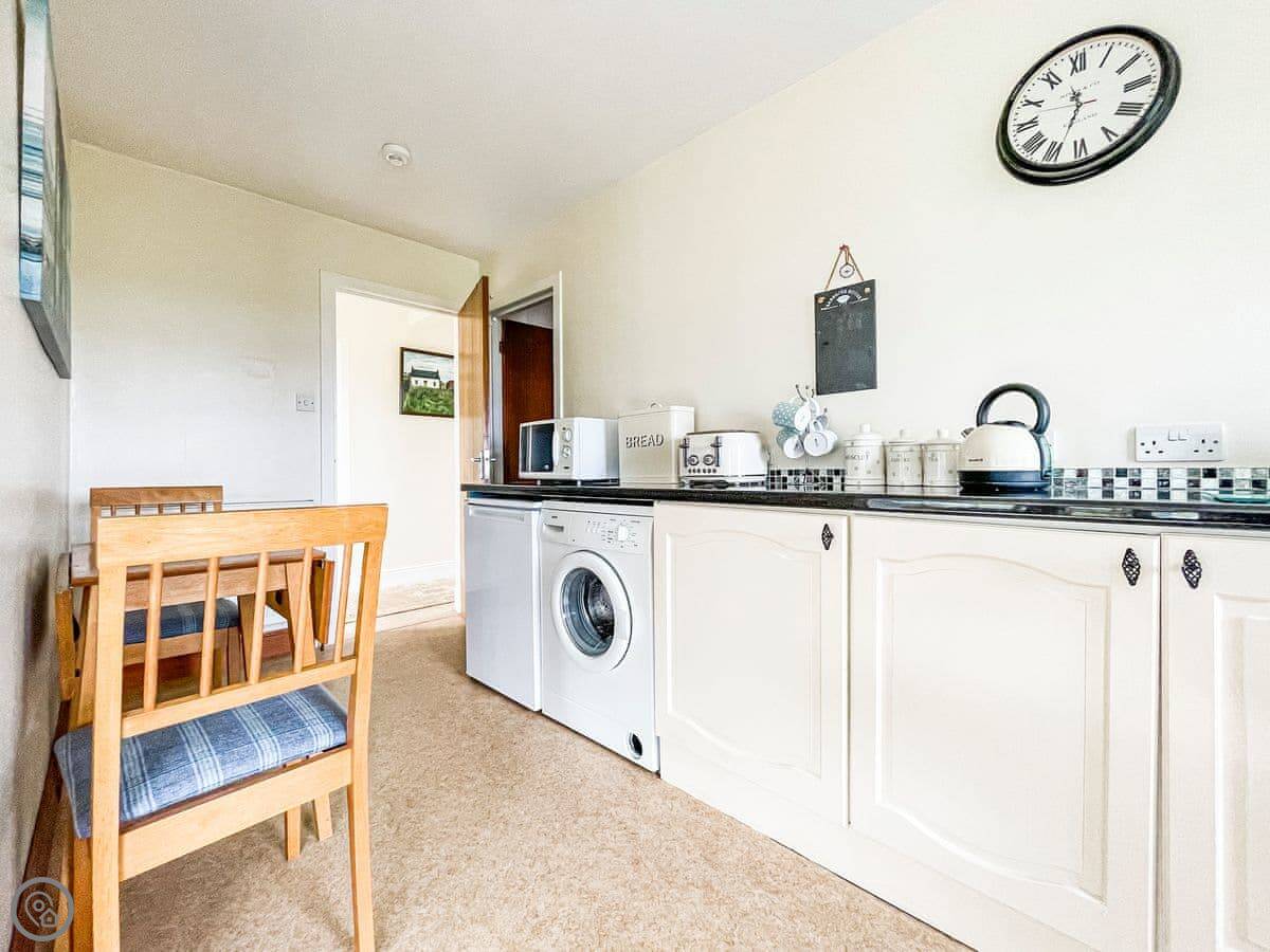You sleep in a kingsize bedroom. It has an en-suite shower room. The living space is in a conservatory, which is nice and light. The kitchen is a galley style. Everything’s on the ground floor, so no stairs.