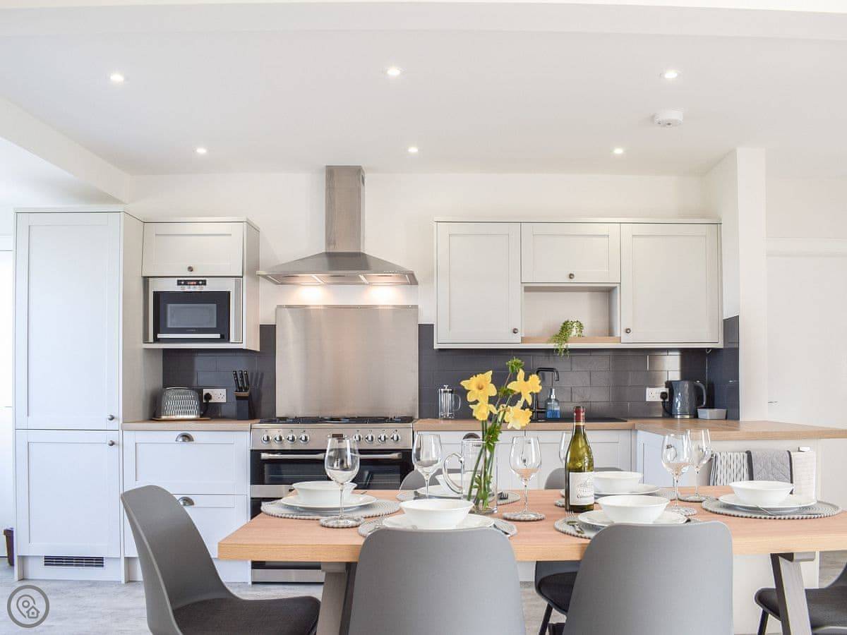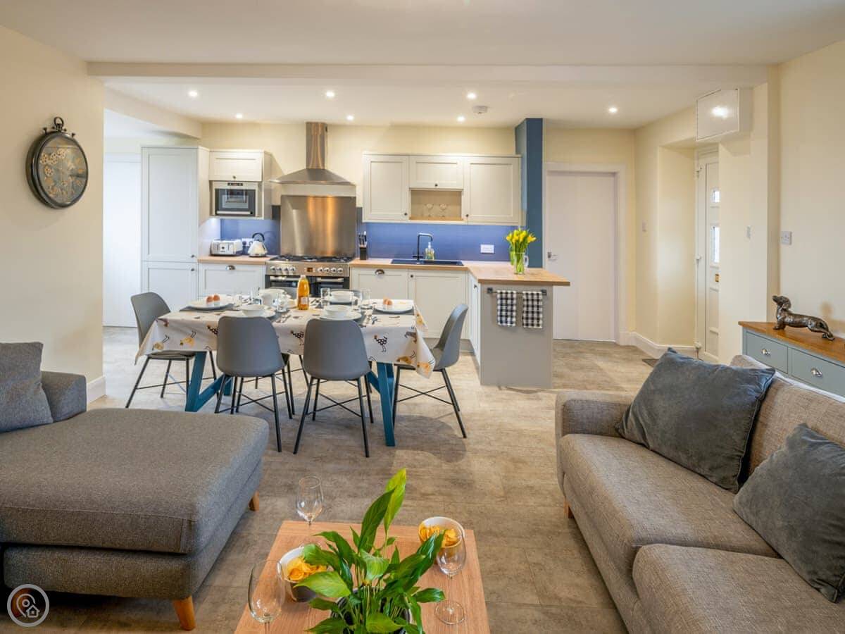 The living space is split. There's a main living and dining room, and then a second sitting room that looks out to the garden. That one gets the evening sun. The kitchen has what you need. You might not use it much because there are good places to eat in the villages nearby.